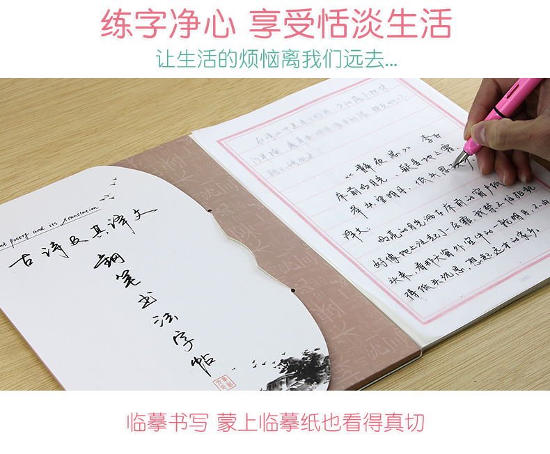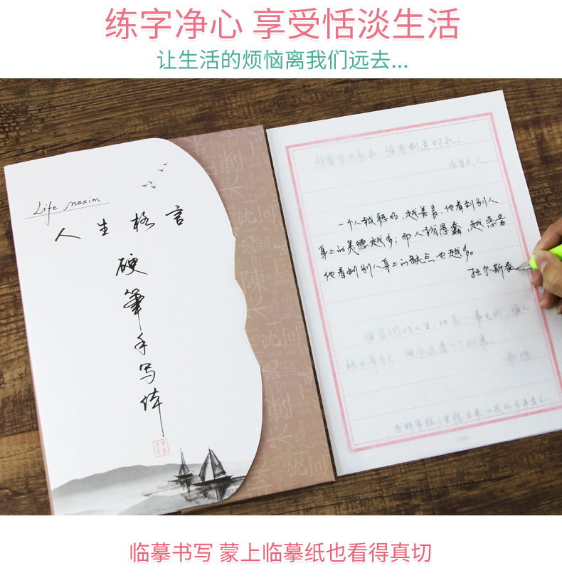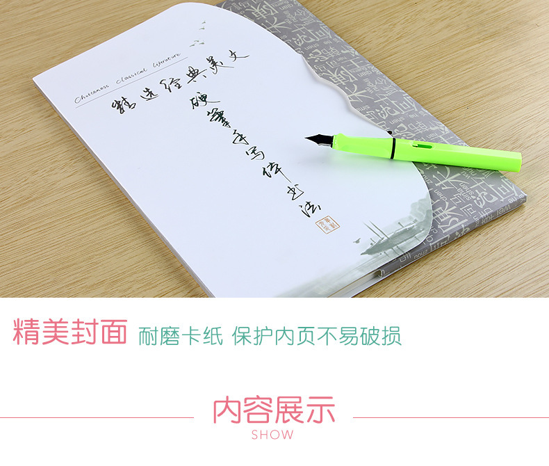 仕様 【古詩訳文36ページ】模写紙 + 万年筆1 + 墨嚢6 + しおり,【経典美文36ページ】模写紙 + 万年筆1 + 墨嚢6 + しおり,【人生格言36ページ】模写紙 + ペン1 + インクパック6 + ブックマーク,【模写紙100枚】,【インクパック50本】,【ペン一本】
