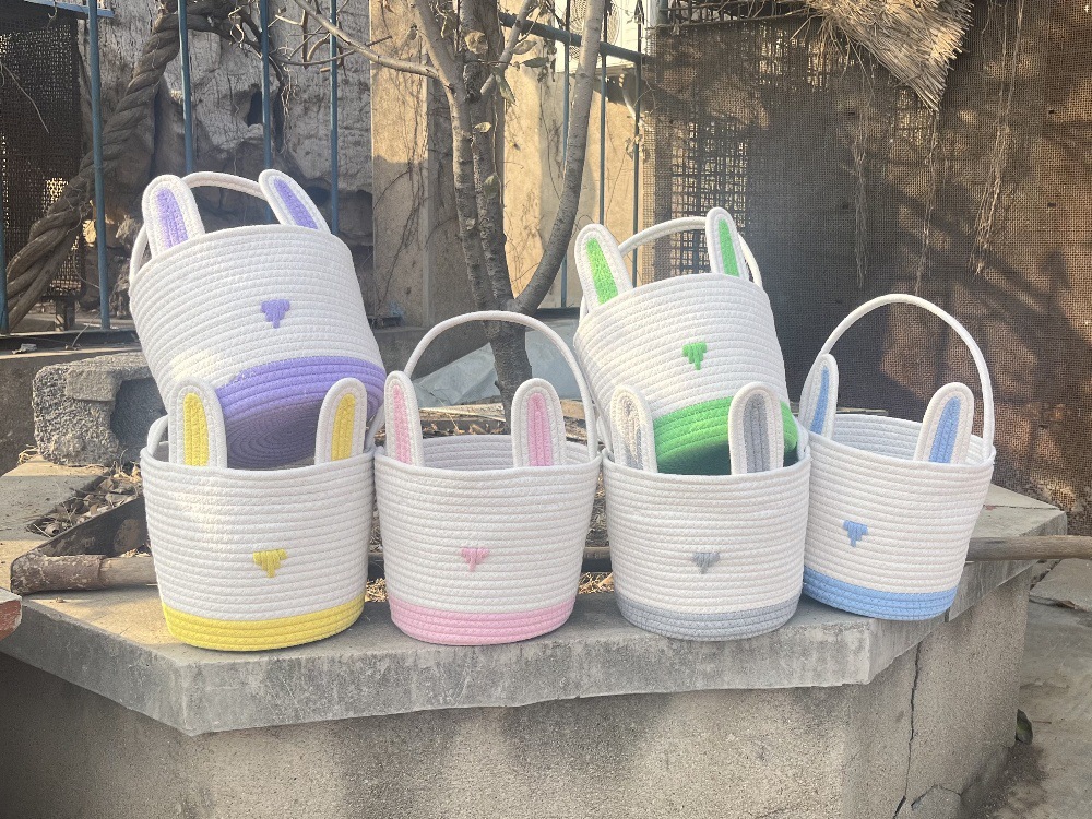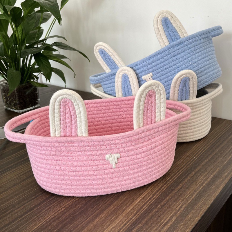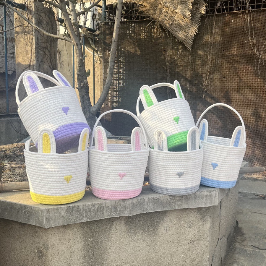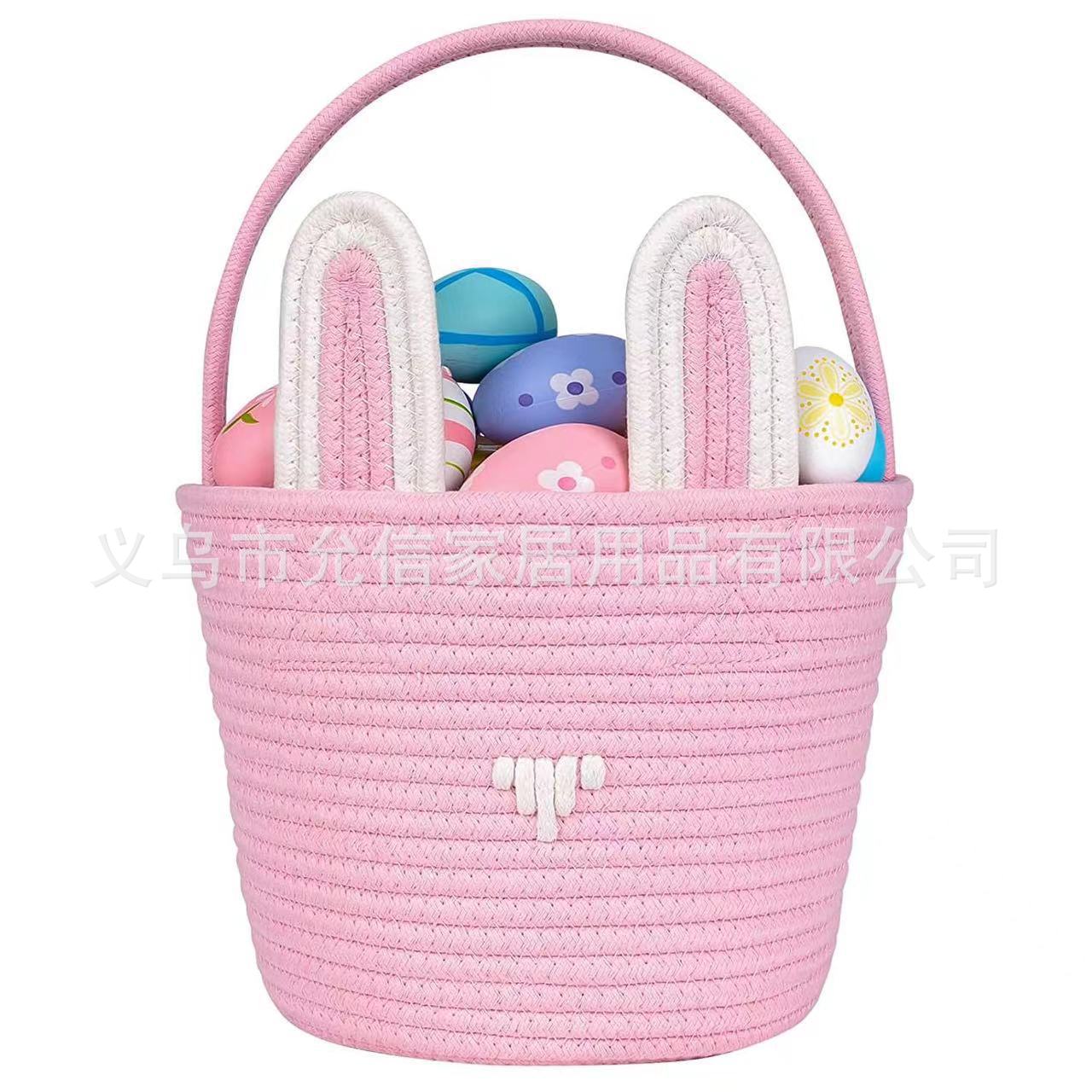 复活节棉绳手工编织兔子耳朵收纳筐儿童玩具篮可爱家用化妆品收纳