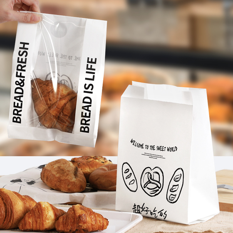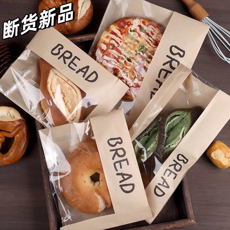 パン包装袋貝果欧包アルカリ水包トーストサンドイッチ包装窓開け透明クラフト紙袋焙煎
