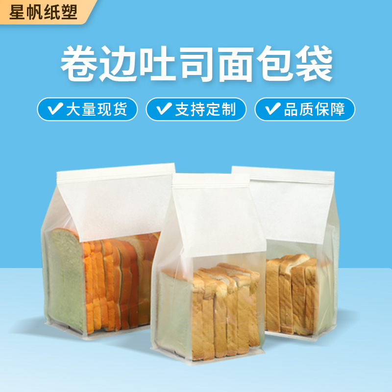 パン包装袋、餅、クロワッサン、スライスパン、ベーキングバッグ、巻き縁付きワイヤー付きジップロックバッグ、綿紙、八方シール
