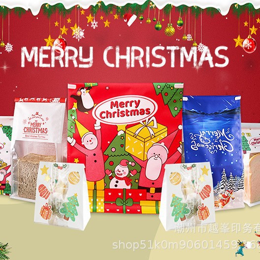外贸跨境圣诞节牛皮纸吐司袋礼品袋卷边铁丝烘焙糖果透明开窗包装