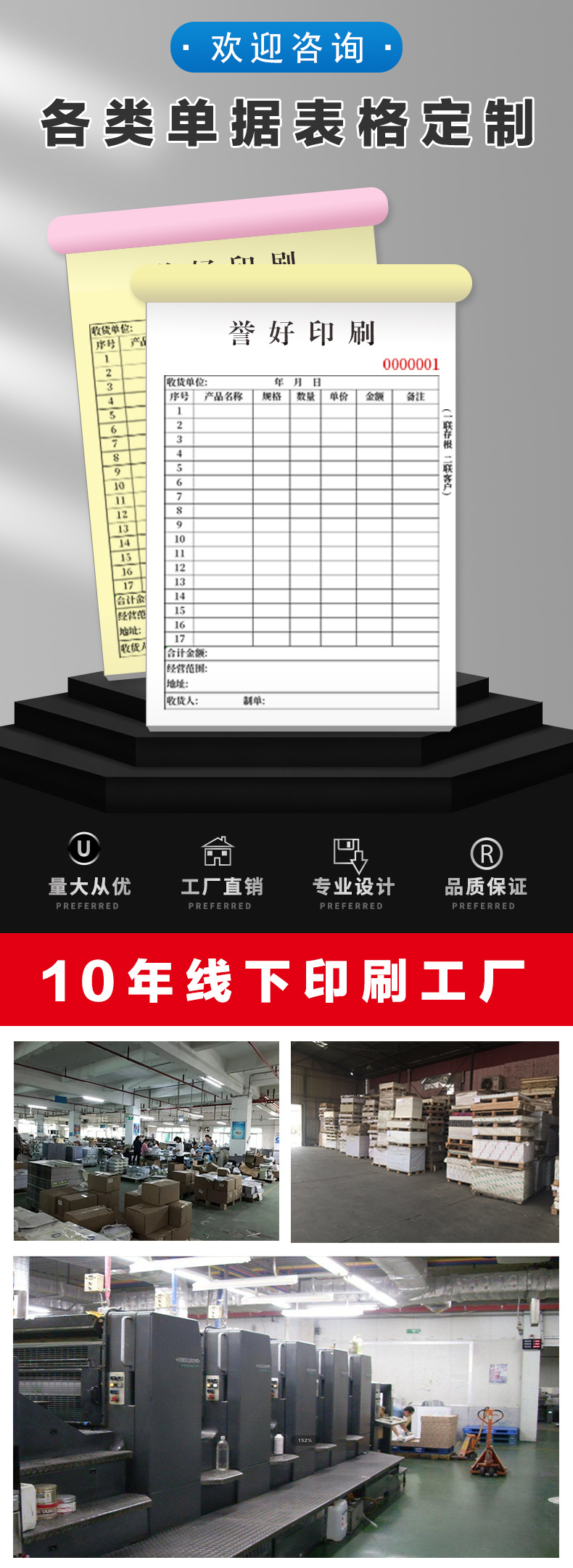 空白の売上リストは、100ページの単連二連三連の様々な用途の無炭素複写を厚くする
