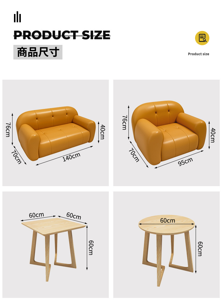 カラー 二人用ソフトカバーソファー (オレンジ),二人用ソフトカバーソファー (ベージュ),シングルソフトカバーソファー (オレンジ),シングルソフトカバーソファー (ベージュ),60CMベニヤスクエアテーブル,60CMベニヤラウンドテーブル,120*60cmの木の皮を貼る楕円の長いテーブル,120*60CMベニヤロングテーブル,円卓ティーテーブルセット