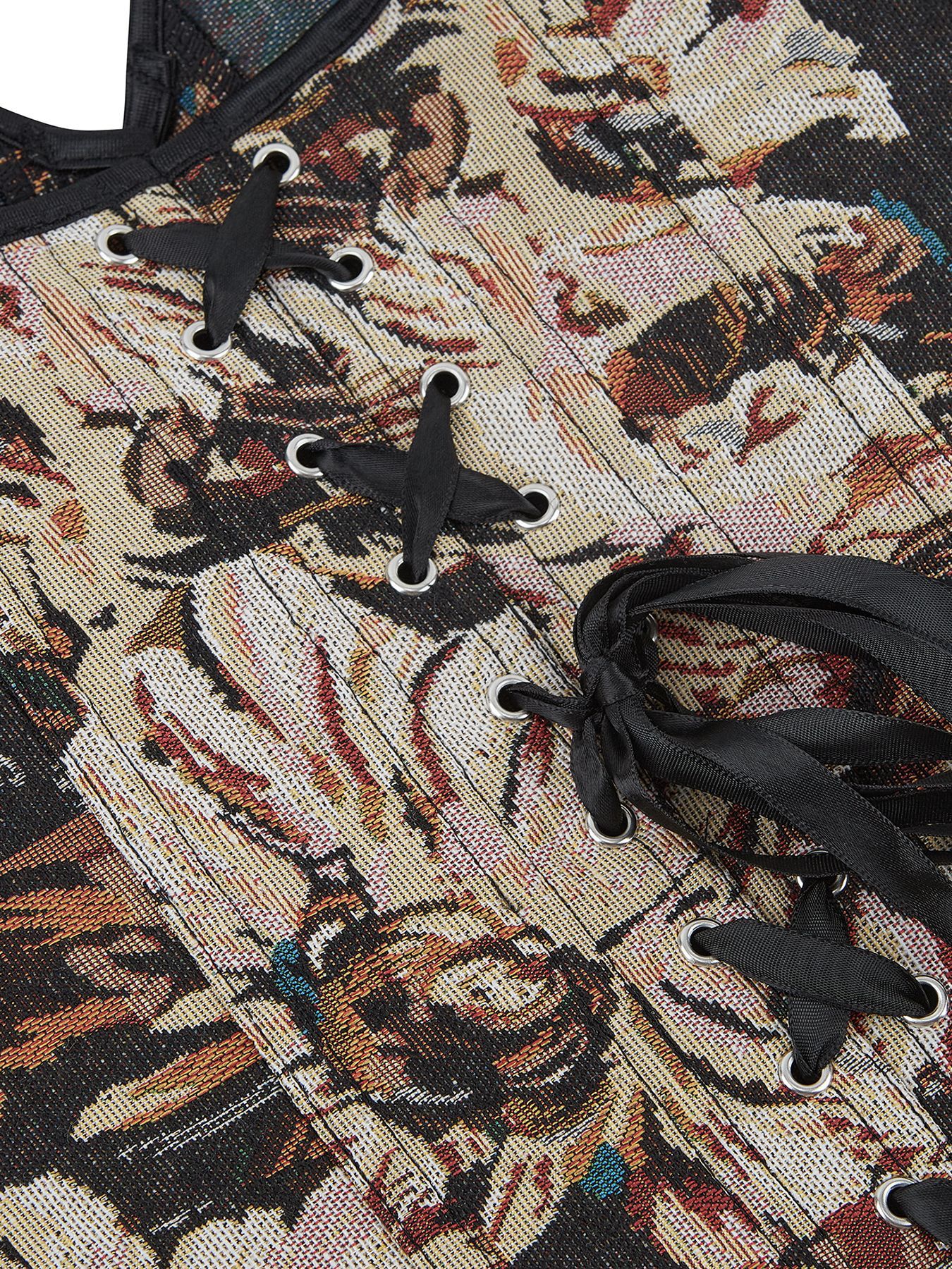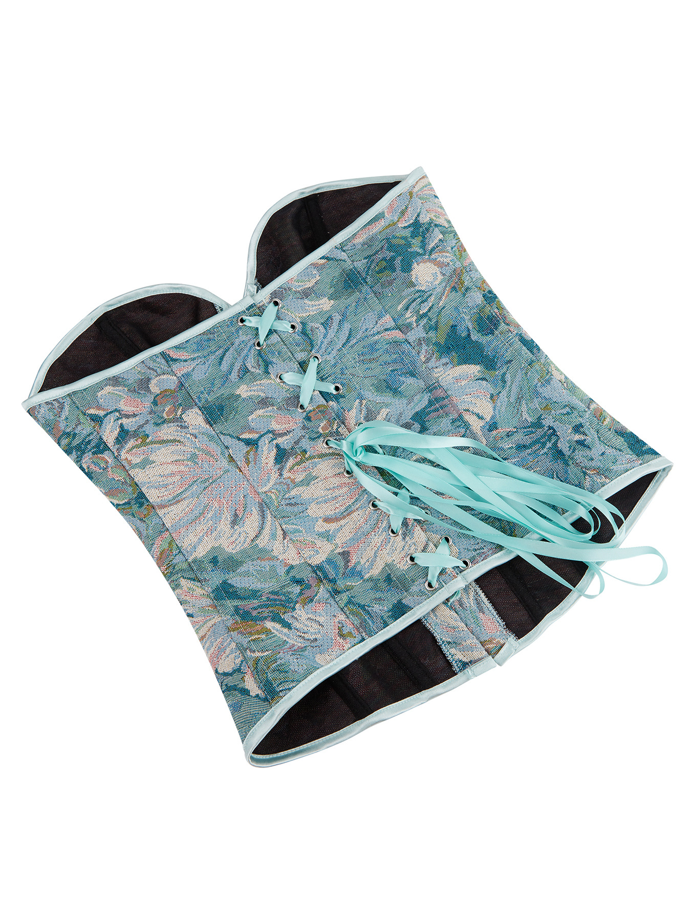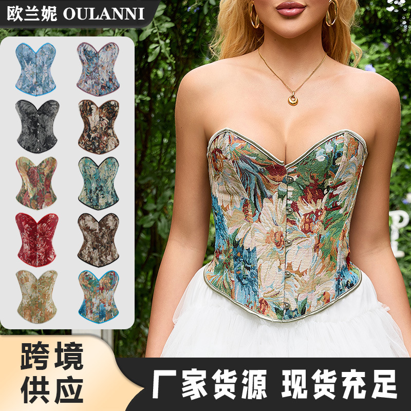 国境を越えた人気のコルセットトップモネ油絵風レトロフィッシュボーンコルセットタイトプッシュアップ宮殿シェイプトップ