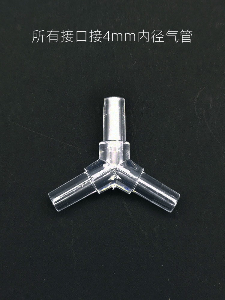 Y型T型三通 可以将气管一分为二,适用于各类气泵增加设备供气能力或其他用途。可分缸使用氧气泵,与氧气管阀门配套使用效果。