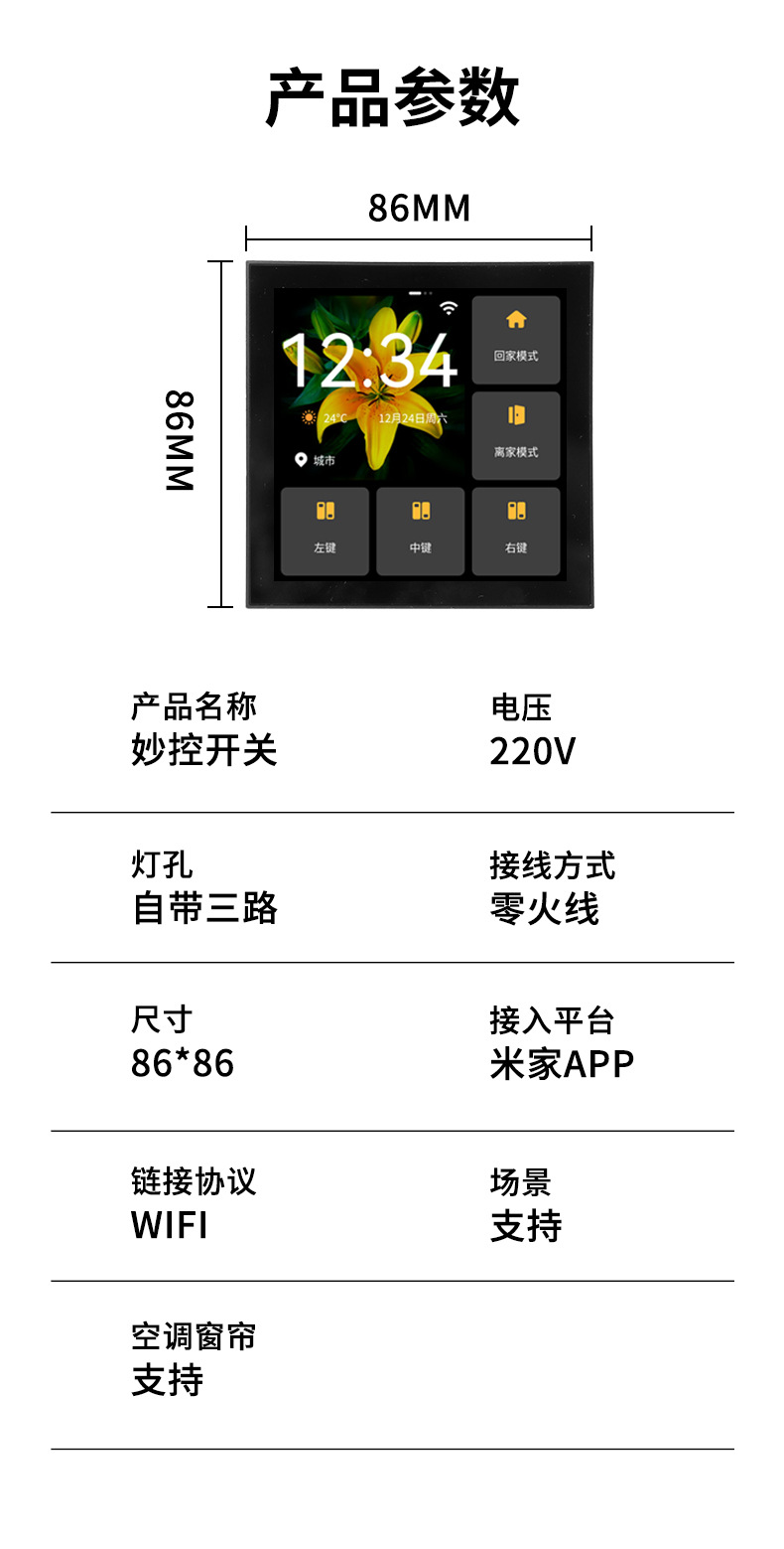 米家智能家庭面板3.23英寸中控屏内置小爱语音控制触控屏智能生活