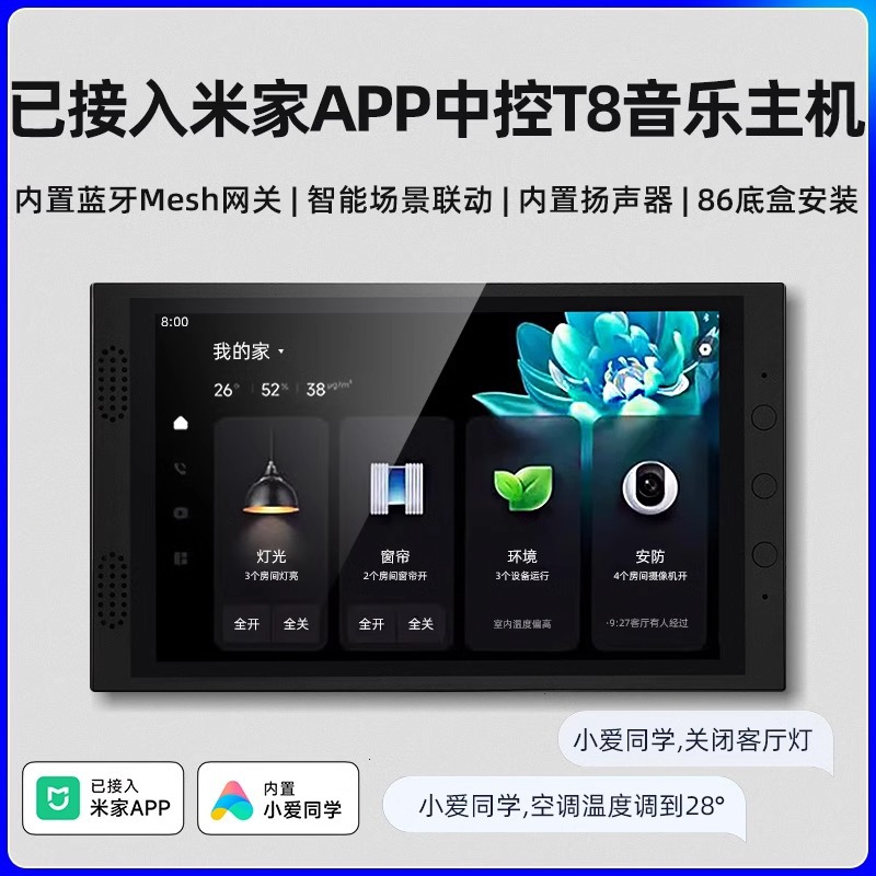 LV8C スマートホーム中控画面 小愛同学 8inch 音声コントロール画面 天井スピーカーはMijiaアプリに接続されています
