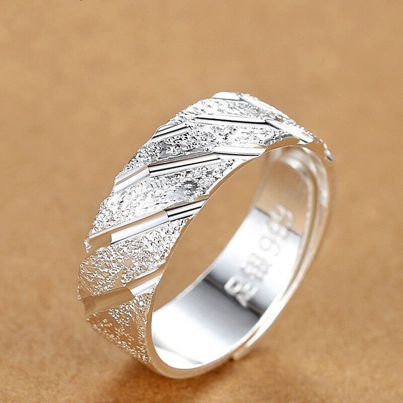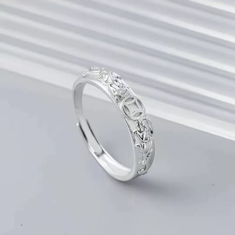 999纯银男士戒指 个性开口可调节指环百福男指环足银食指单身银戒
