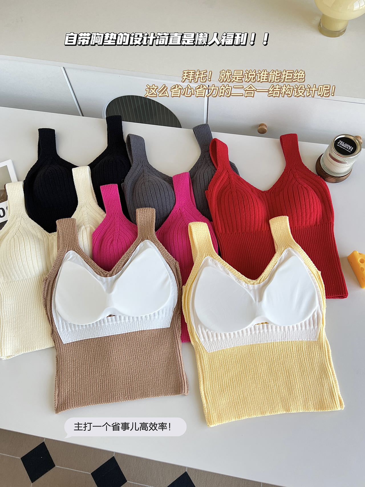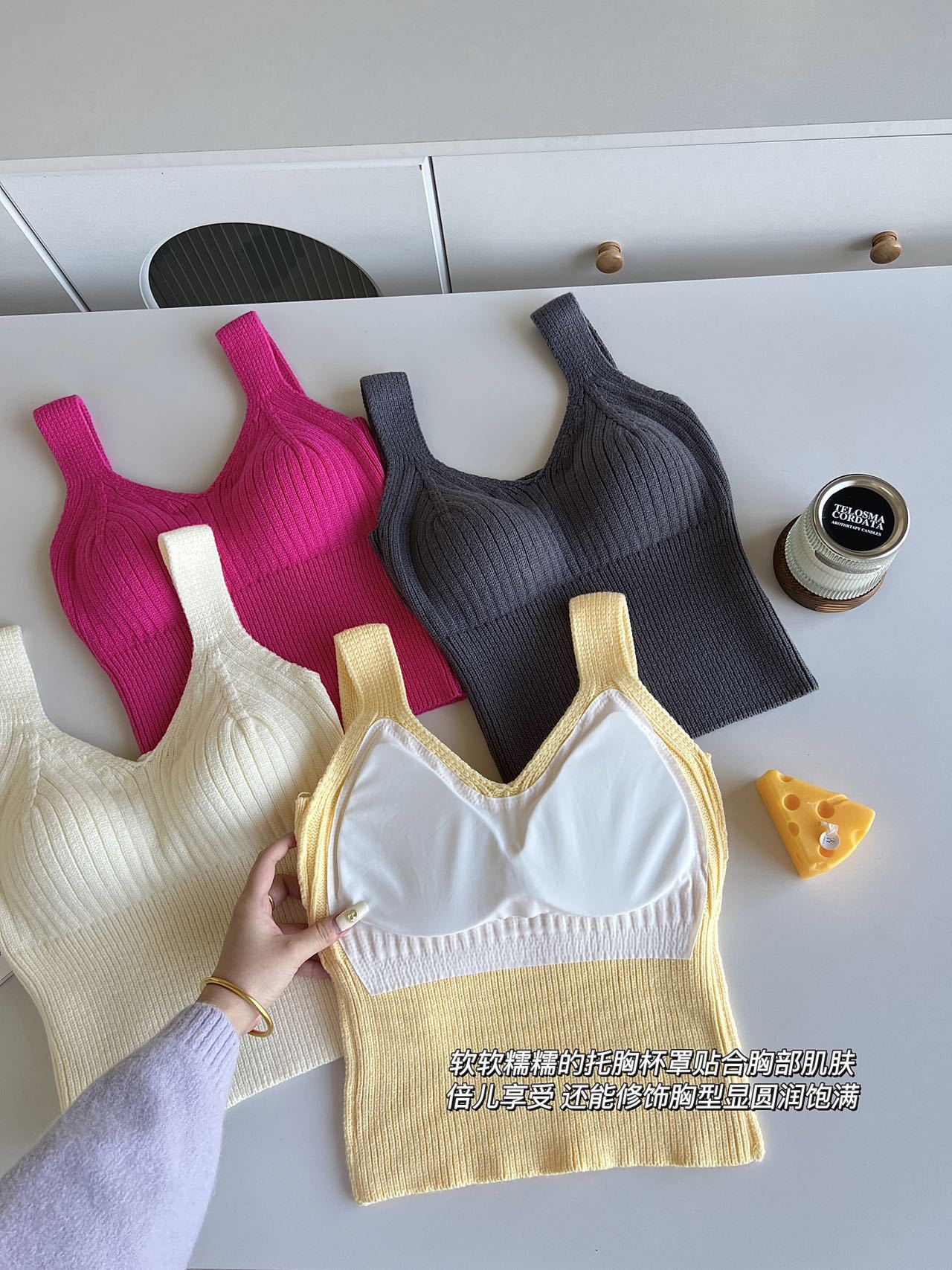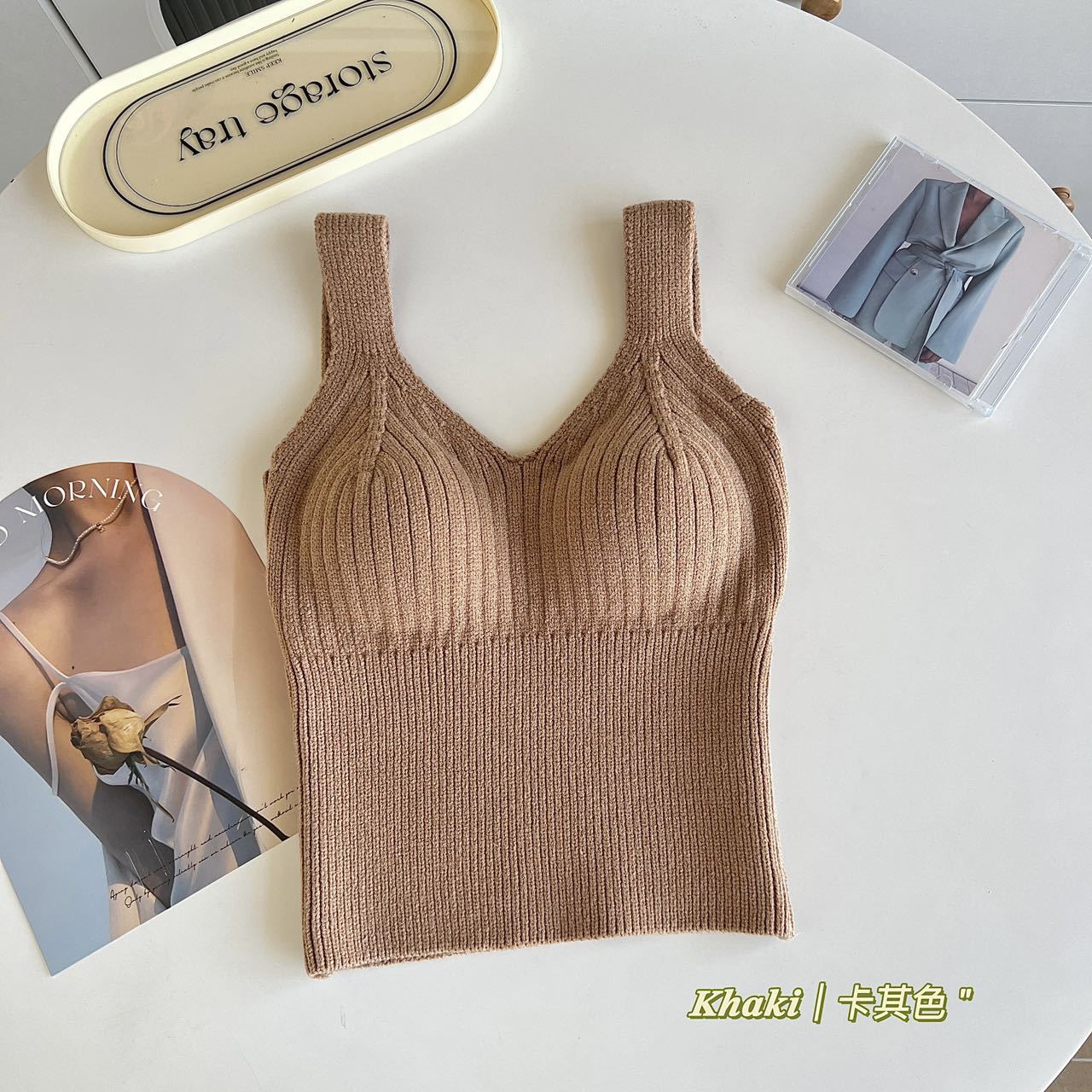 1881 # ニットストラップベスト女性は胸スーツの中に胸パッド付きの美背下着を着ている
