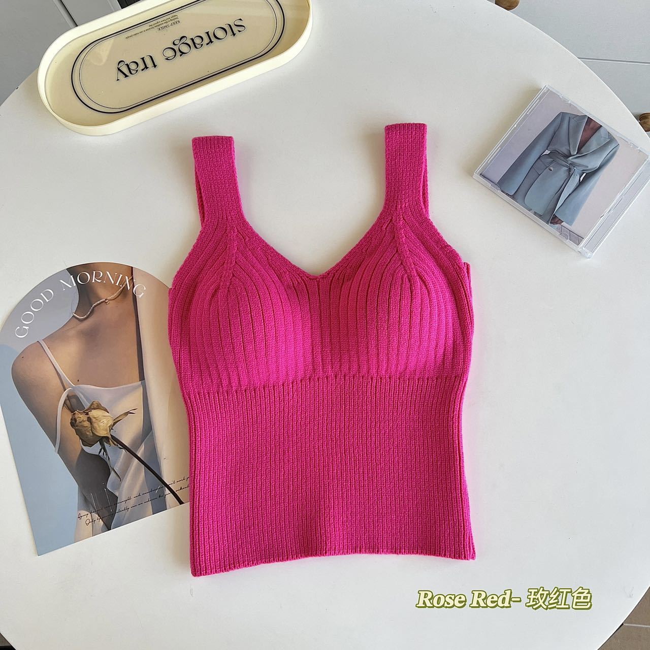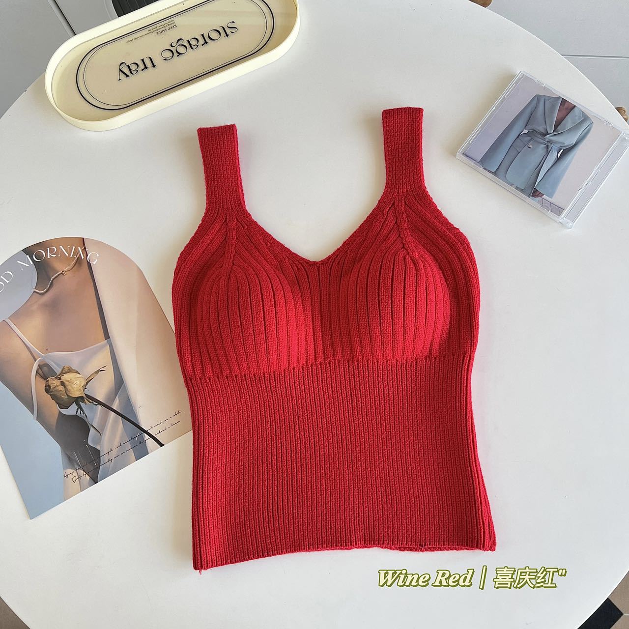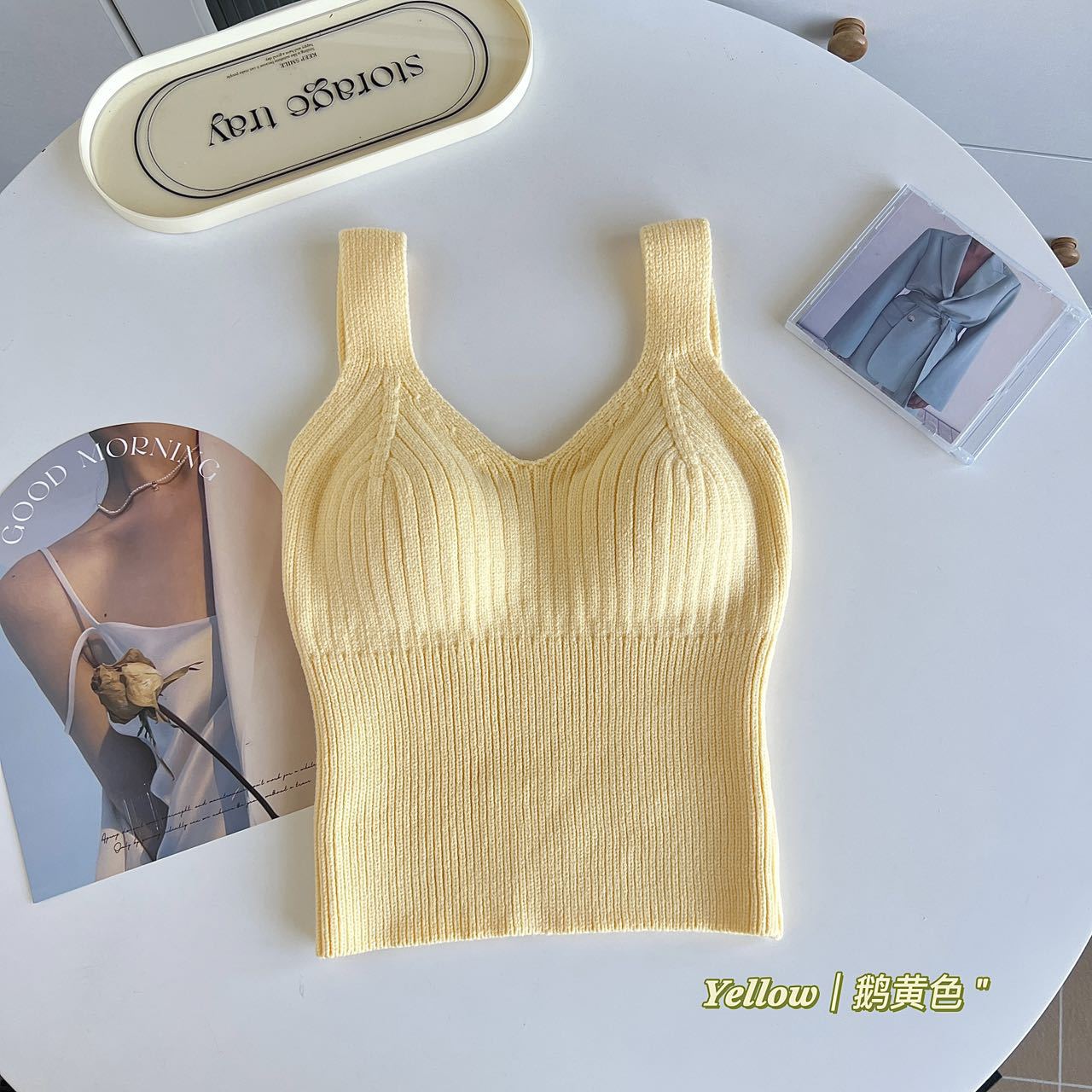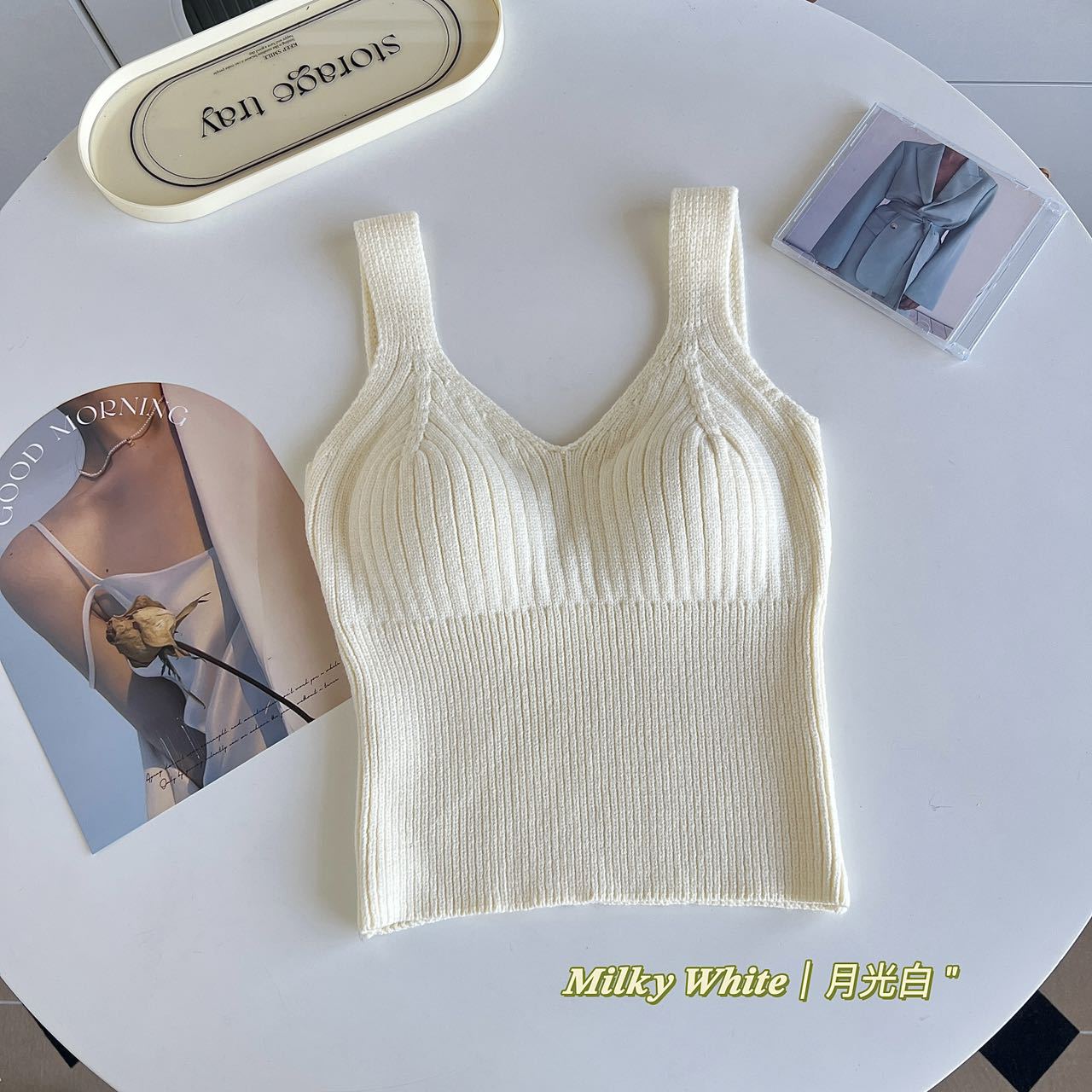 1881 # ニットストラップベスト女性は胸スーツの中に胸パッド付きの美背下着を着ている