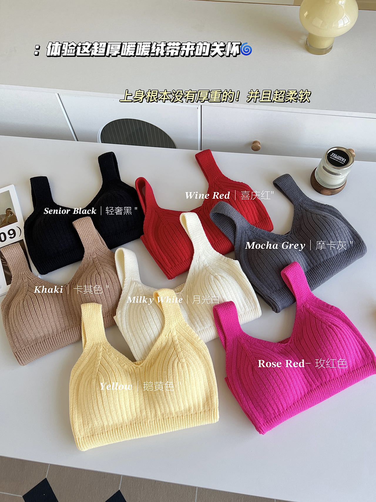 保温ベスト女性のウールの暖かいベルベットの胸パッド付きの毛が厚くなったブラジャー一体式秋冬のストラップ下着