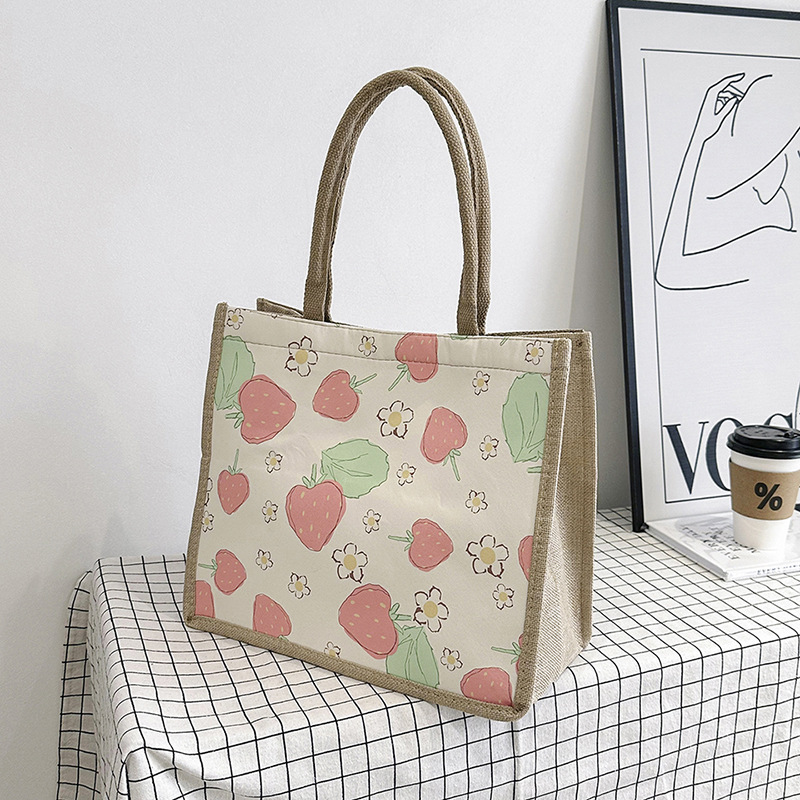 黄麻バッグ、リネンバッグ、おしゃれな新作、熱転写プリント、クロスボーダーレディースバッグ、通勤用大容量バッグ、女性用バッグ