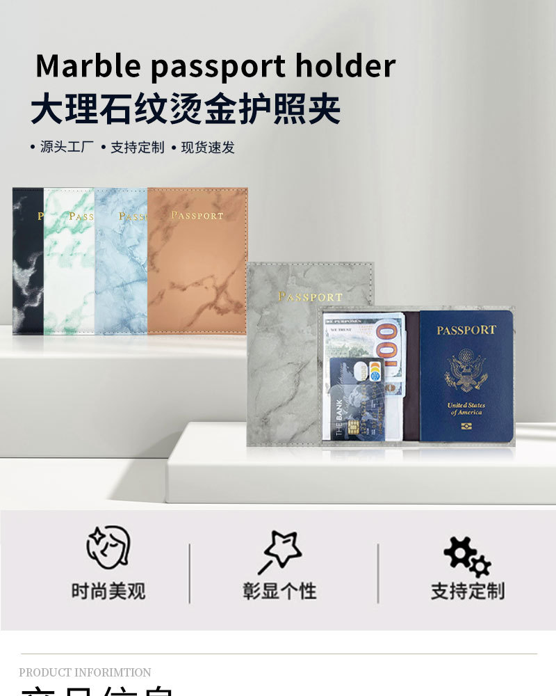現物クロスボーダー固定箔押しpassportパスポート保護カバー大理石紋パスポートケース