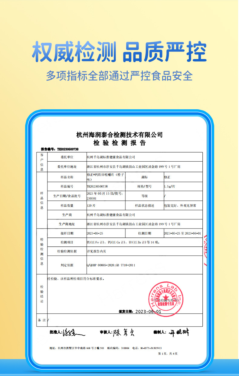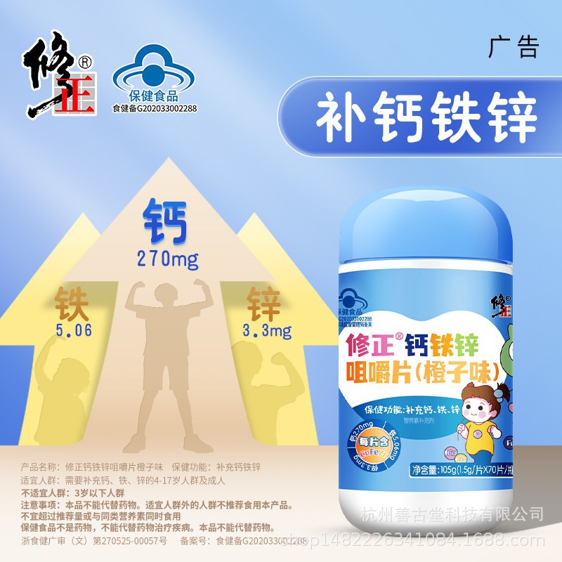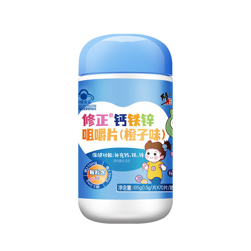 修正カルシウム・鉄・亜鉛チュアブル錠(オレンジ味)子供、学生、青少年、中高年向けのカルシウム・鉄・亜鉛サプリメント、高カルシウム錠