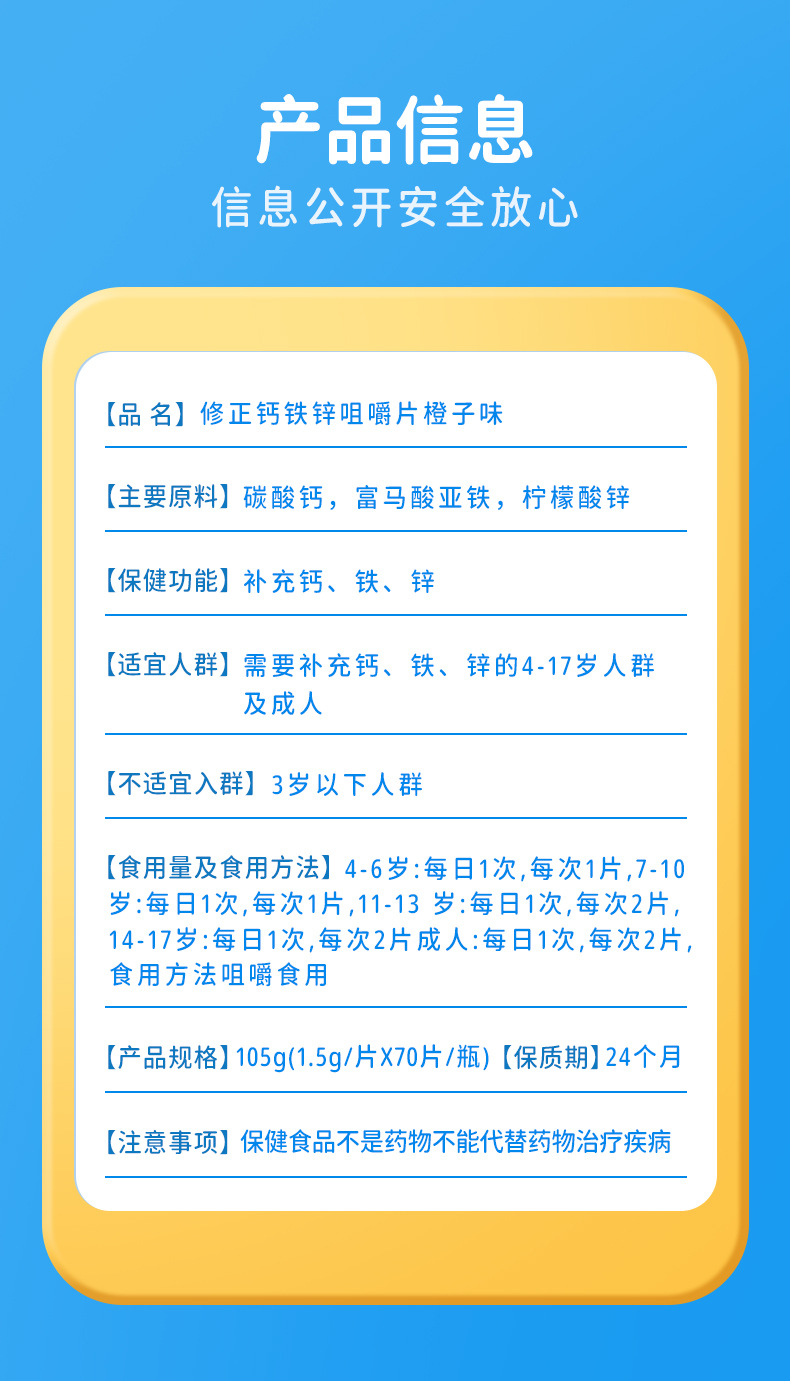 パッケージ仕様 1.5g/錠 * 70錠 (起爆カルシウム鉄亜鉛咀嚼錠),1.5g * 60錠 (子供用多種類ミネラルシート),10ml * 18本 (仁とブランドカルシウム鉄亜鉛経口液),カルシウム・鉄・亜鉛経口液(1歳以上)