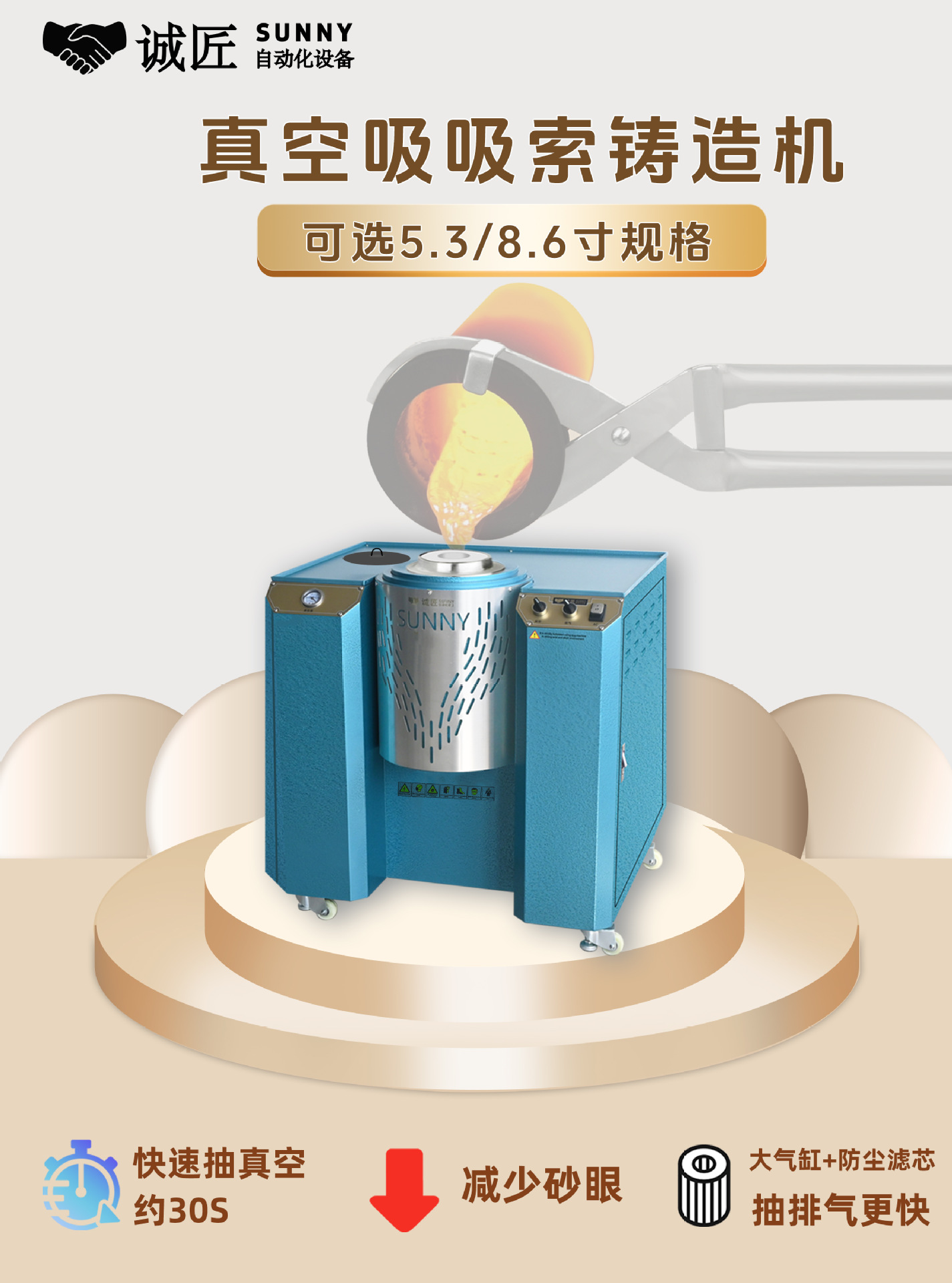 半自動真空ジュエリー貴金属鋳造機、砂穴なし金仏像工芸品、加圧逆型機、ダイカスト