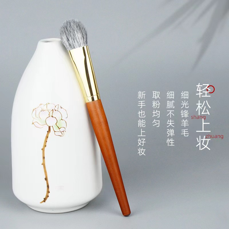 古風な化粧ブラシ、クルミ材のチークブラシ、ハイライトブラシ、輪郭ブラシ、化粧ブラシ、メイクアップツール、手作り