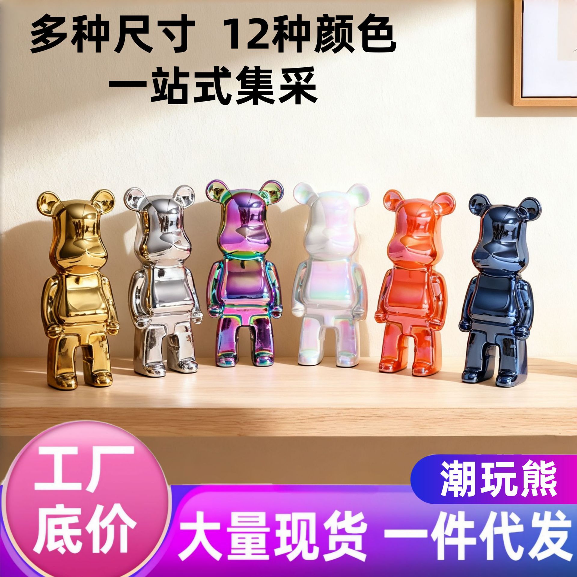 セラミックメッキ家庭用大テレビキャビネット置物愛熊暴力熊18cm28マルチサイズ多色