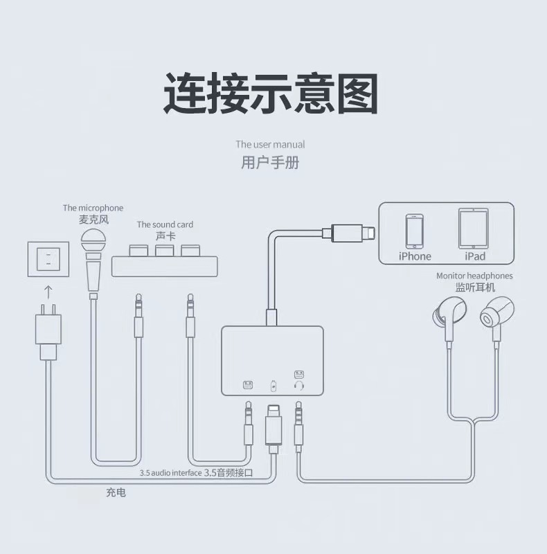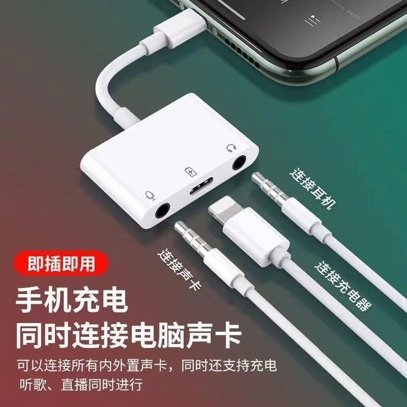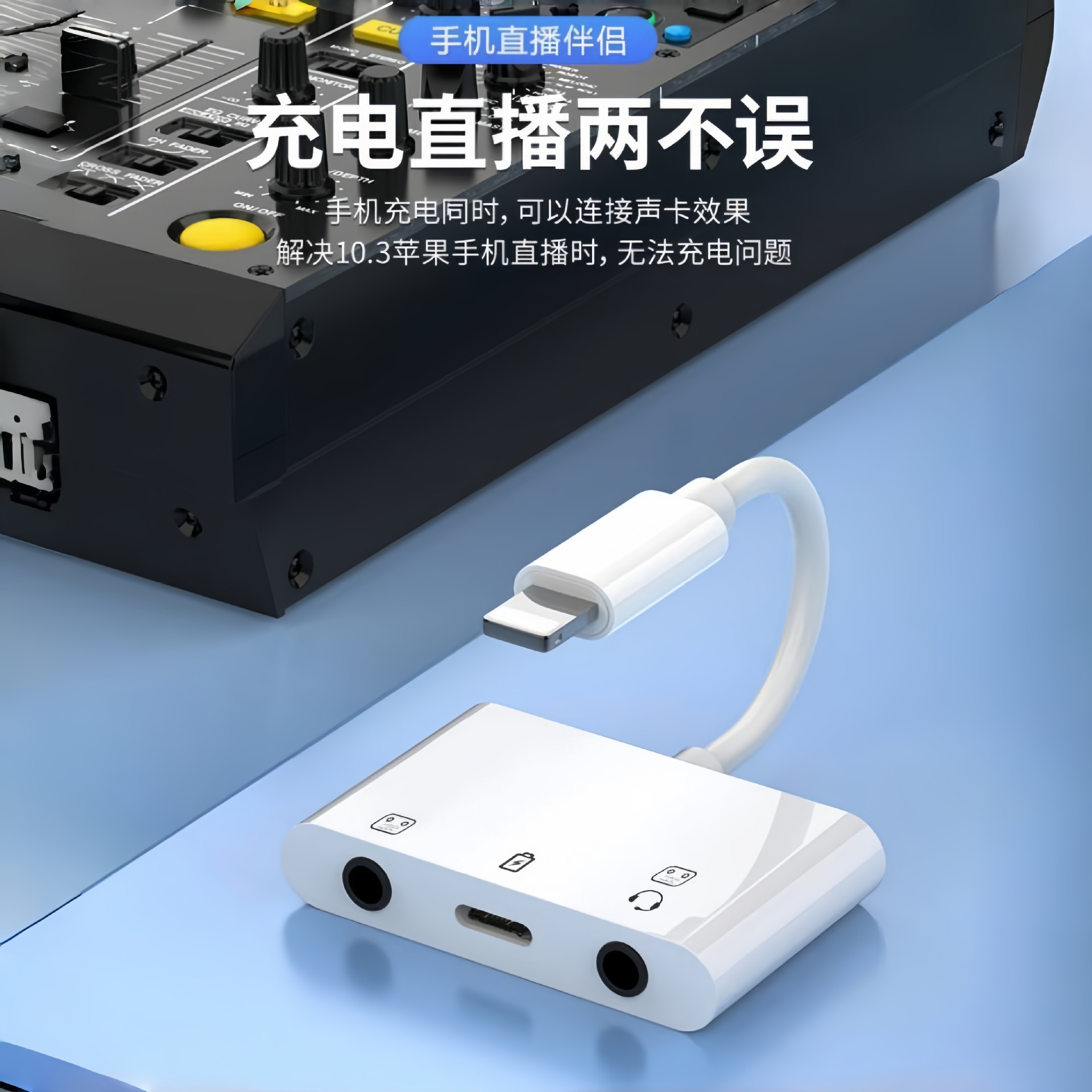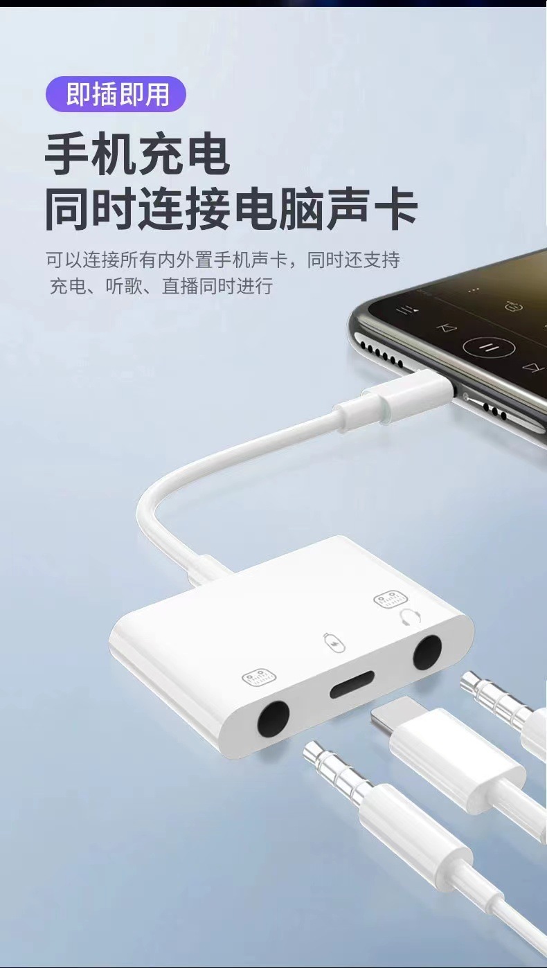 声卡适用苹果安卓手机typc三合一直播转换器语音通话PK连麦转接头