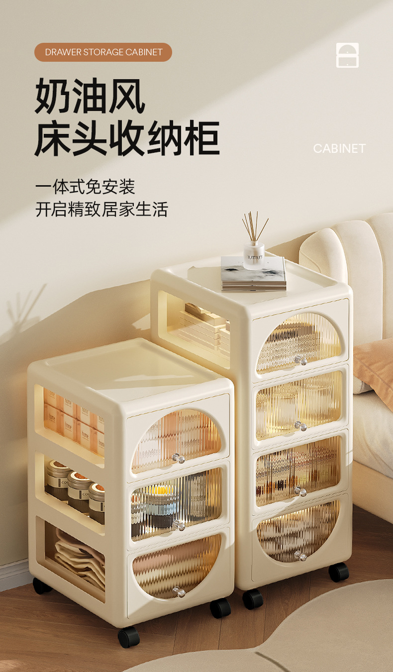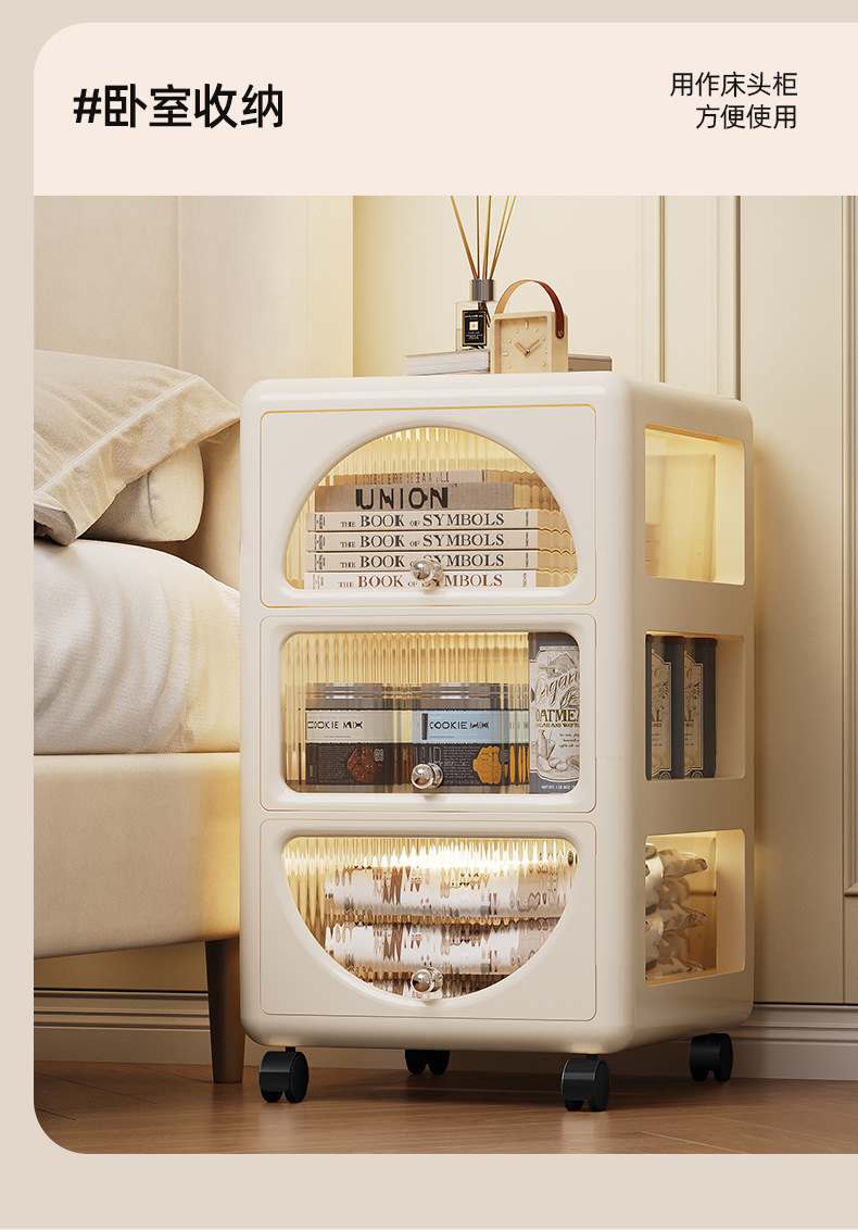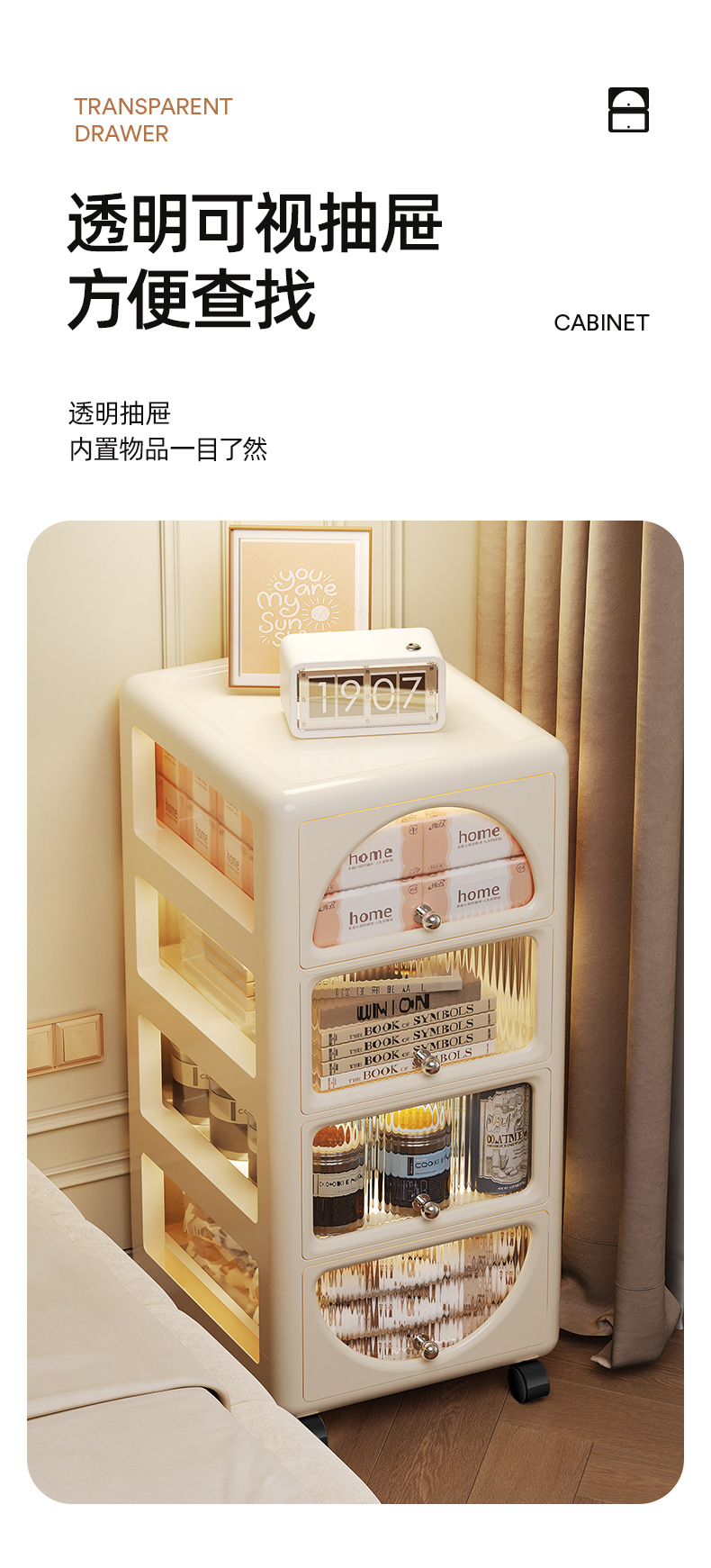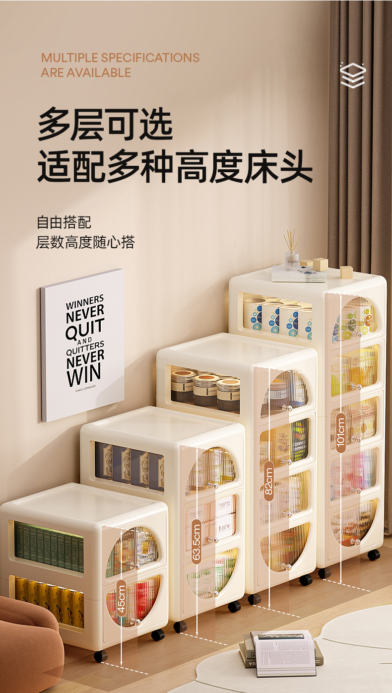 家庭用ベッドサイドキャビネットリビングルーム大容量床置き移動式棚寝室ベッド引き出し多層収納キャビネット