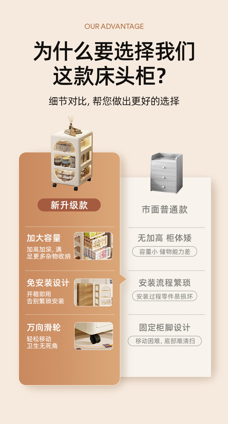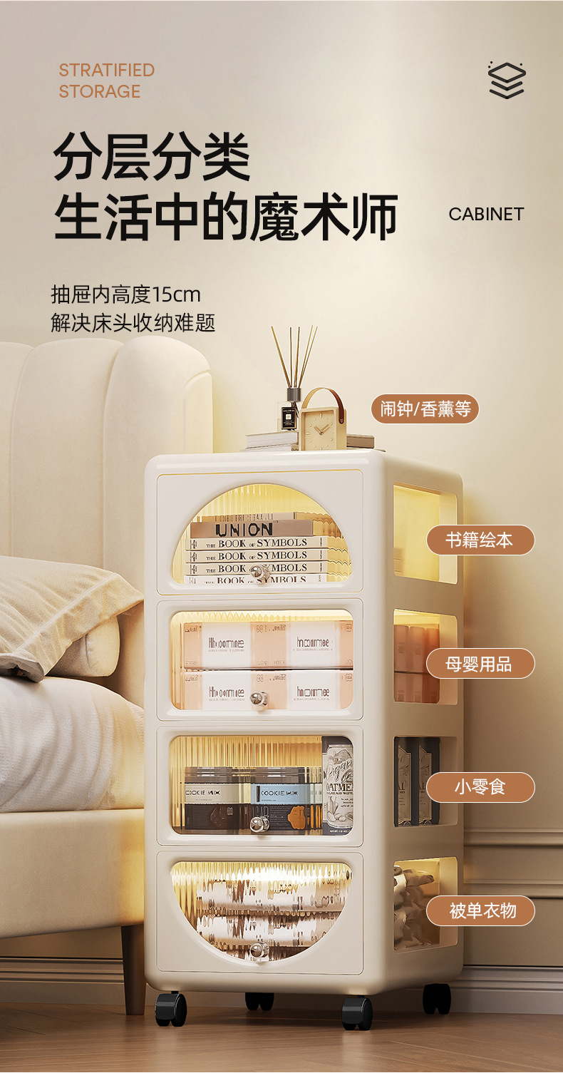 夹缝床头柜大容量靠墙长条储物柜置物架简约卧室缝隙床边收纳窄柜