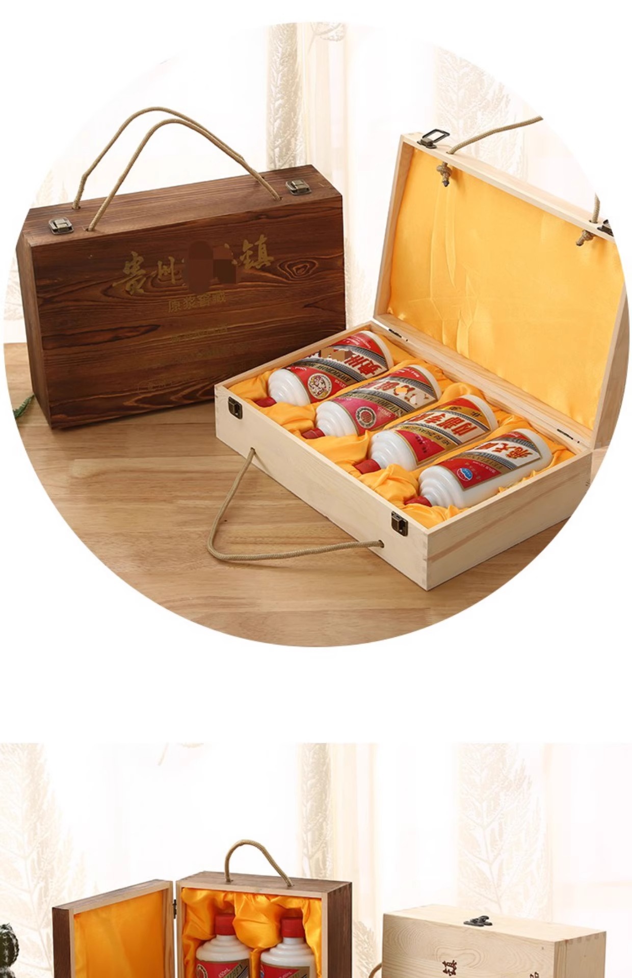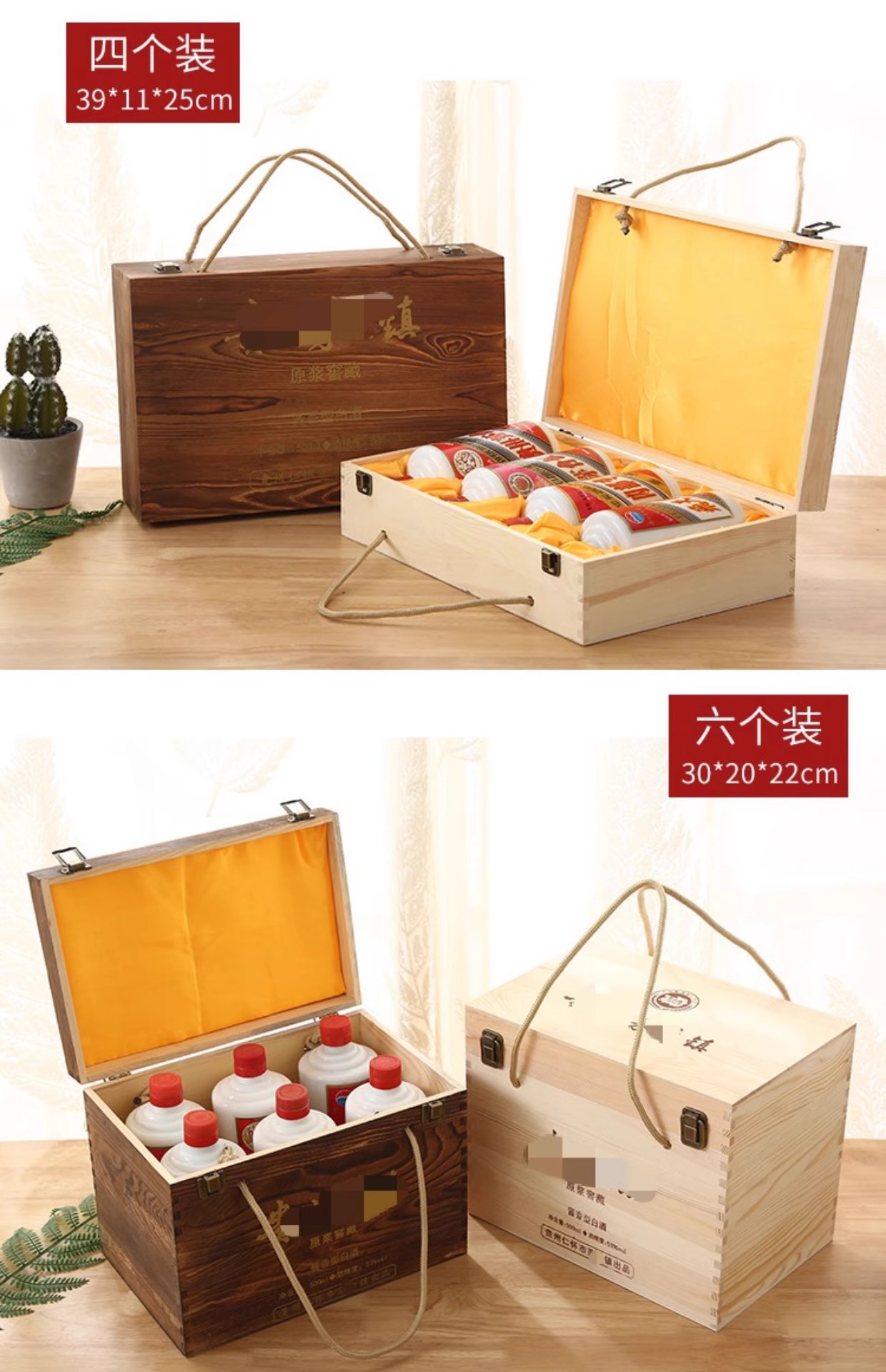 現物木造手提げ式白酒箱白酒包装箱六本四本白酒木箱木造礼箱