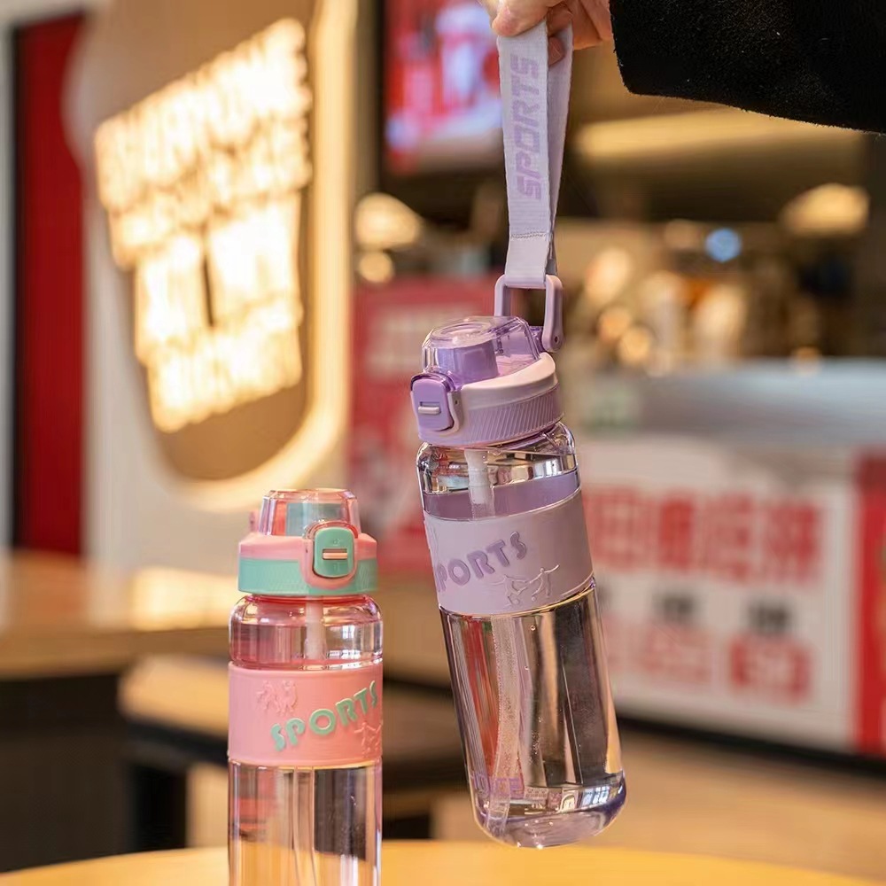 透明創意ストローコップ携帯男女学生大容量アウトドアスポーツ水筒プラスチックコップ