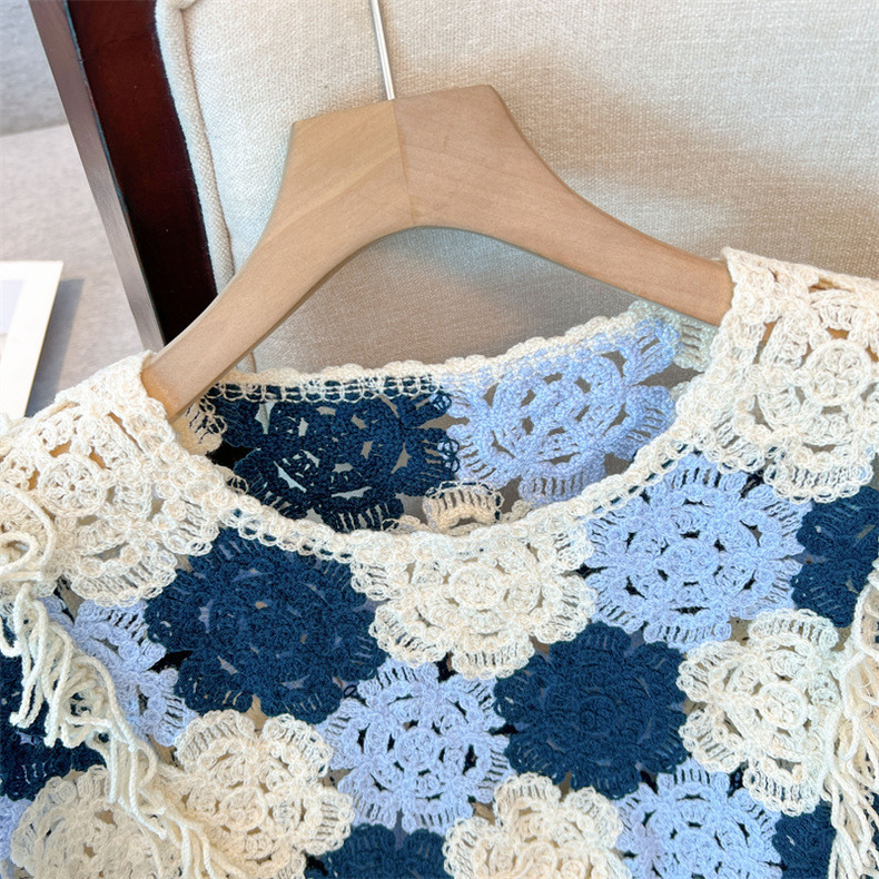 ボヘミアン民族風リゾートスカート女性大衆デザイン感不規則な透かし彫りフック花フリンジストラップワンピース