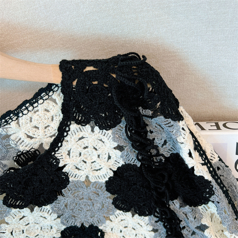 2022ヨーロッパの新しいブラウスの女性のニットの透かし彫りのフックの花の外でサスペンダーのスカートの夏の薄い長袖の上着を組み合わせます。