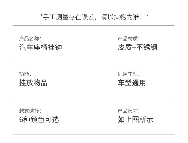 ·产品名称:车载皮革挂钩 ·产品材质:皮革材质