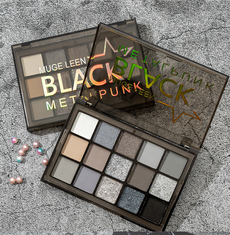 MUGE leen 15色暗い夜の騎士のアイシャドーの煙の色の金華の化粧の黒色のパンクの風のアイシャドー