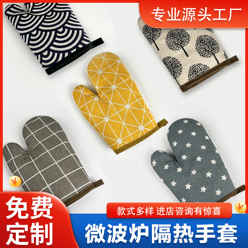 北欧スタイルの電子レンジ断熱手袋オーブン火傷防止手袋高温耐性キッチン綿とリネンのベーキング手袋