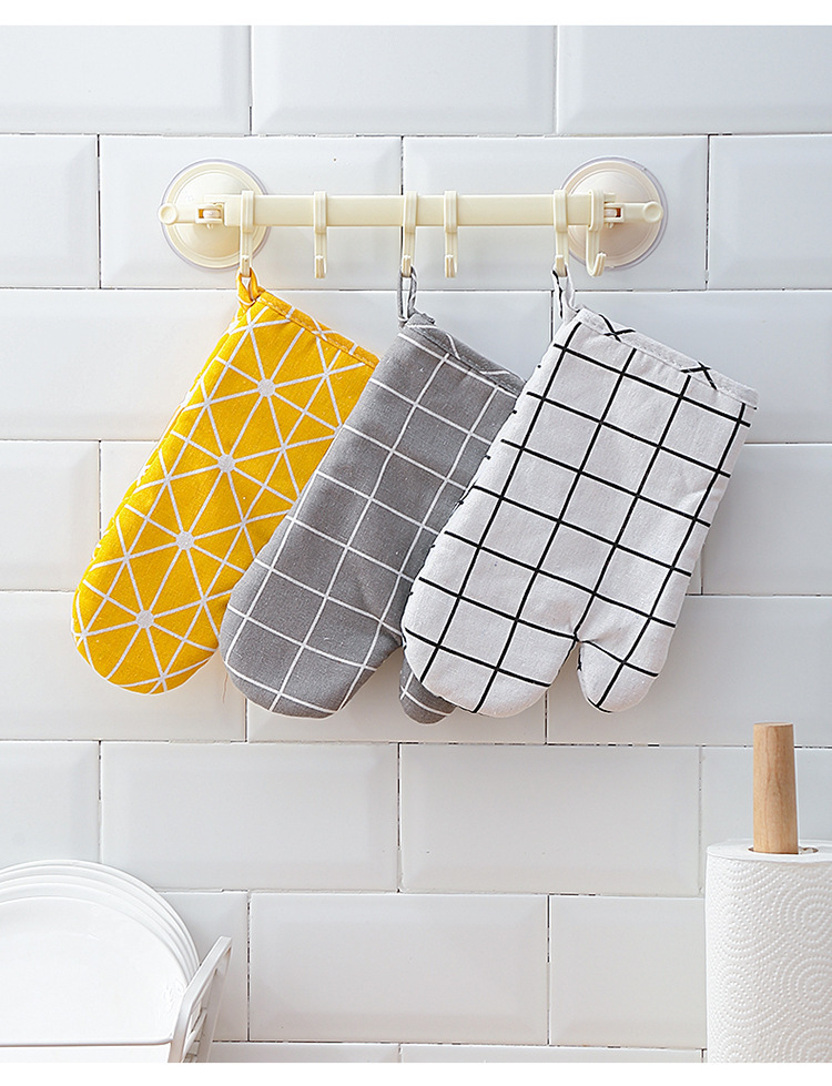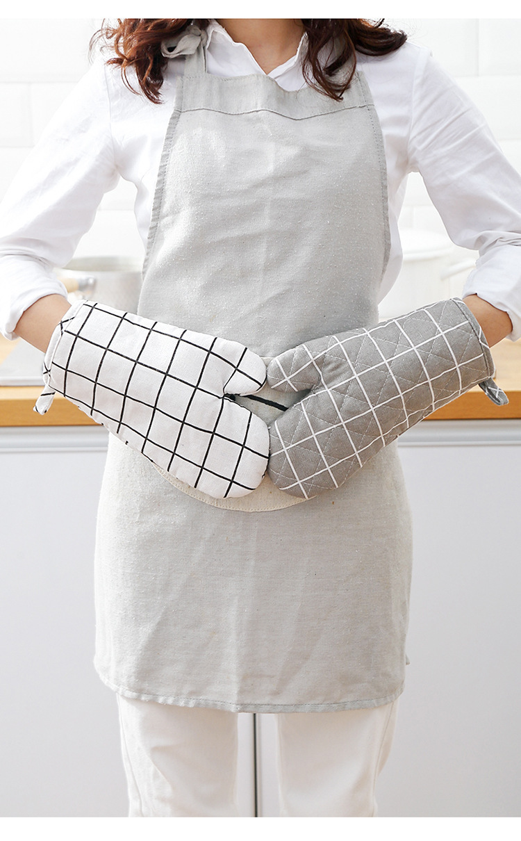 耐熱手袋 キッチン 電子レンジ 厚手 格子柄 オーブン 耐熱手袋 高温対応 ベーキング 綿麻 断熱手袋