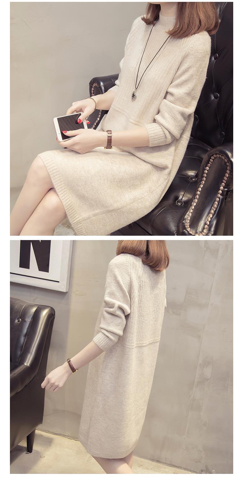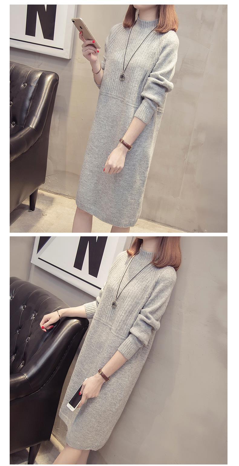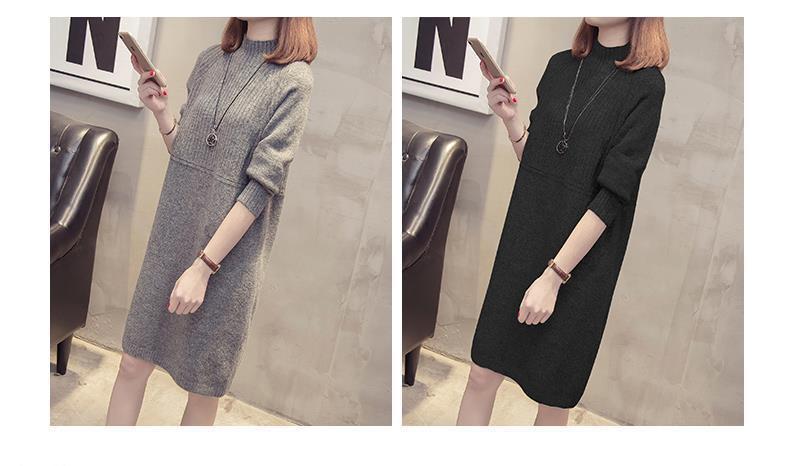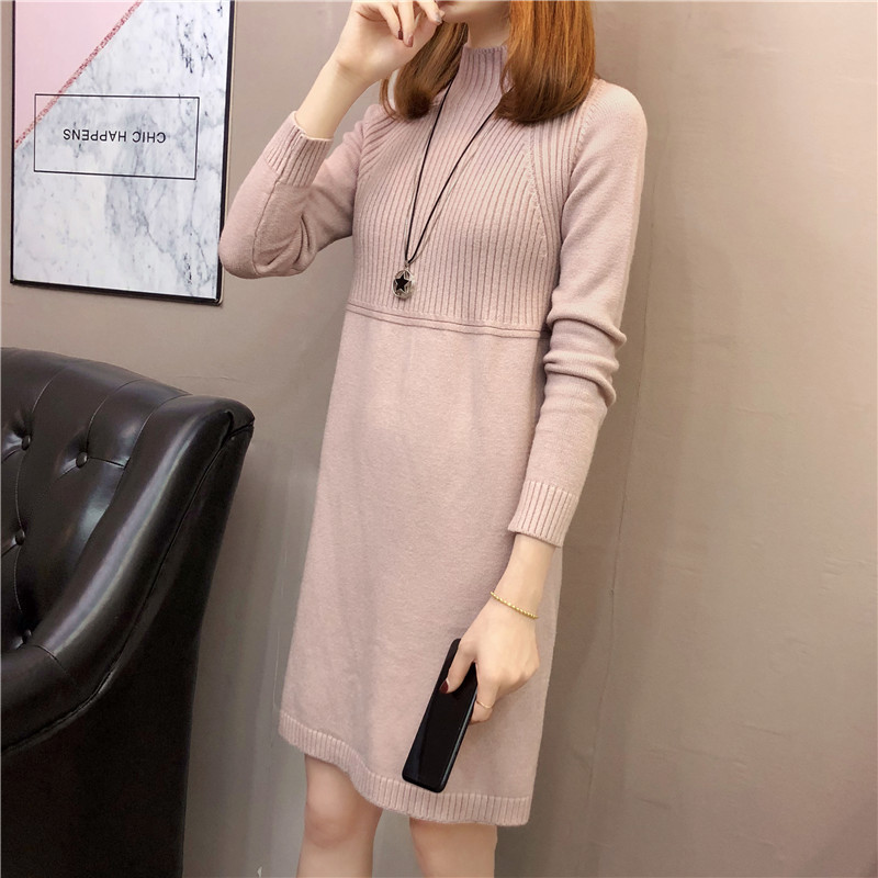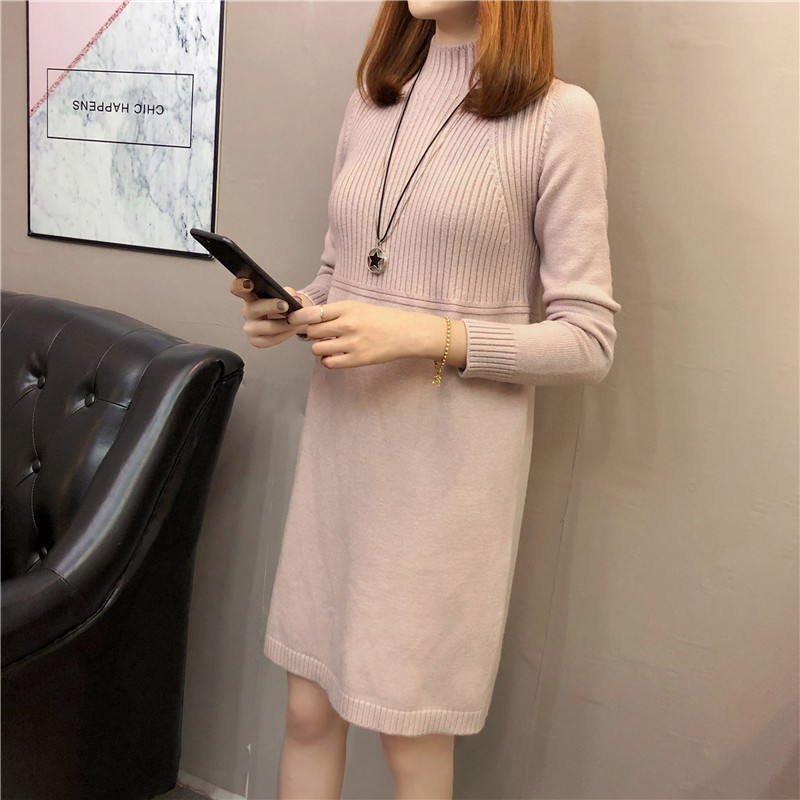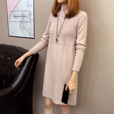 中长款毛衣女半高领套头加厚针织连衣裙秋冬过膝纯色打底衫毛衣裙