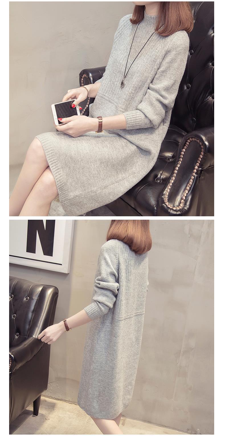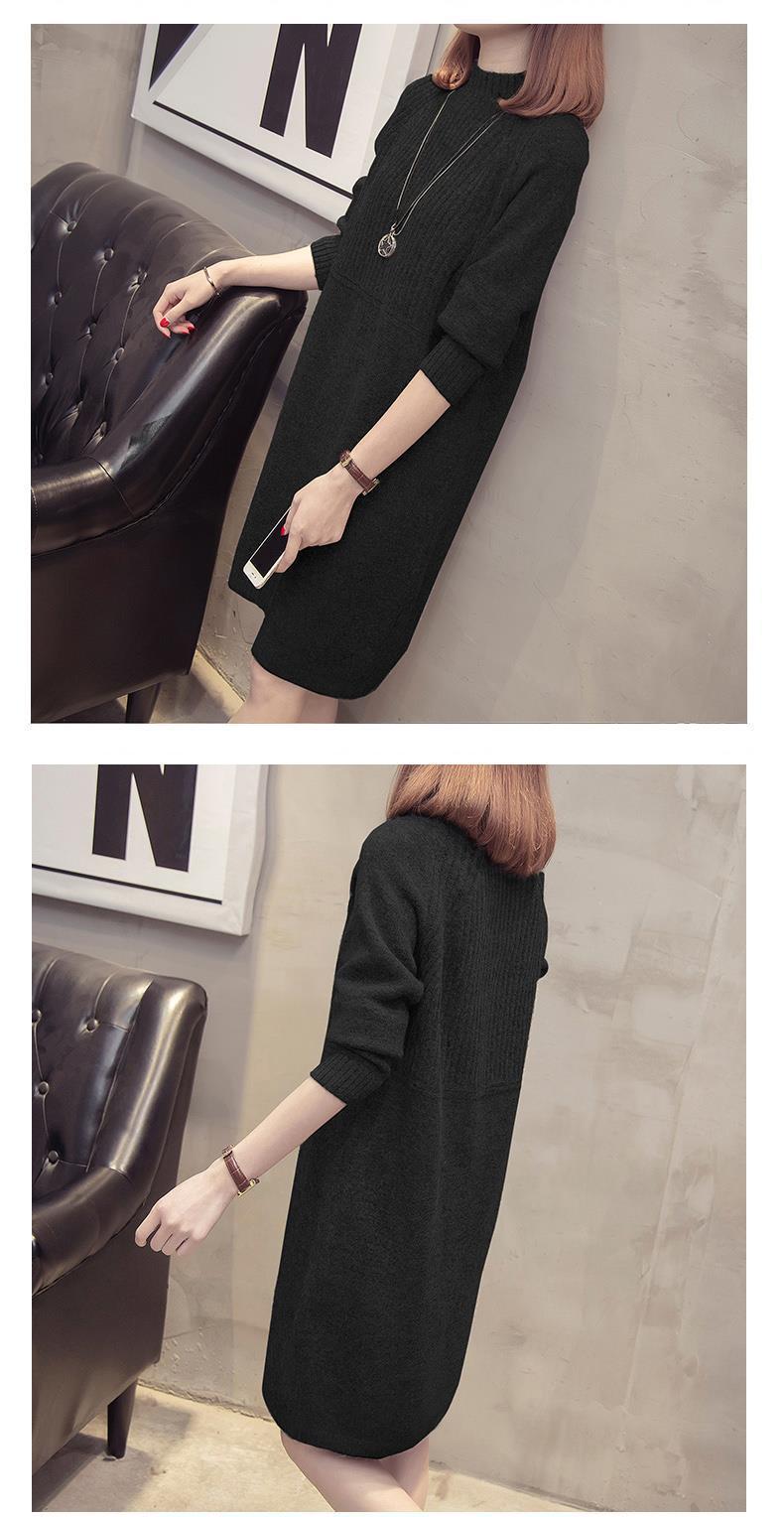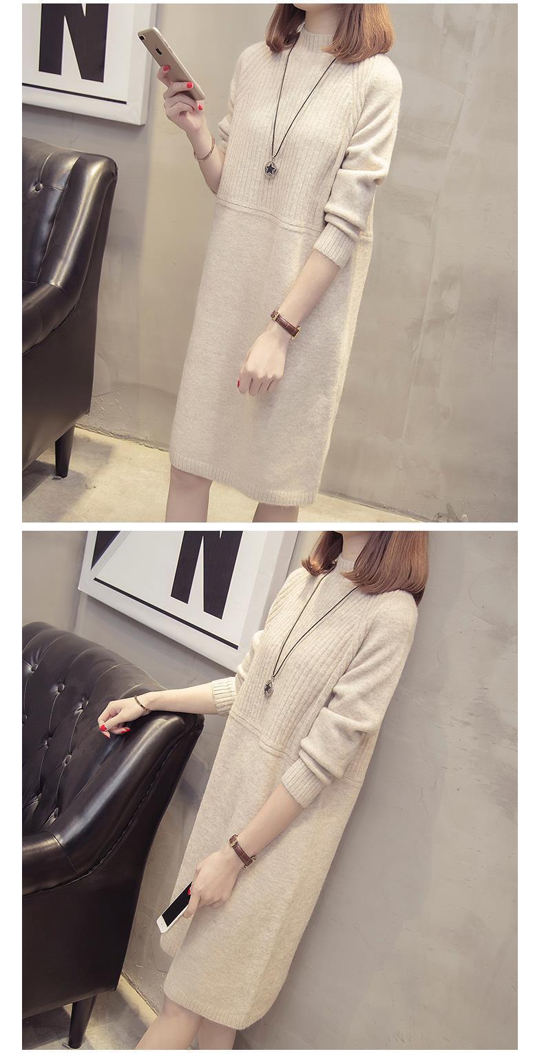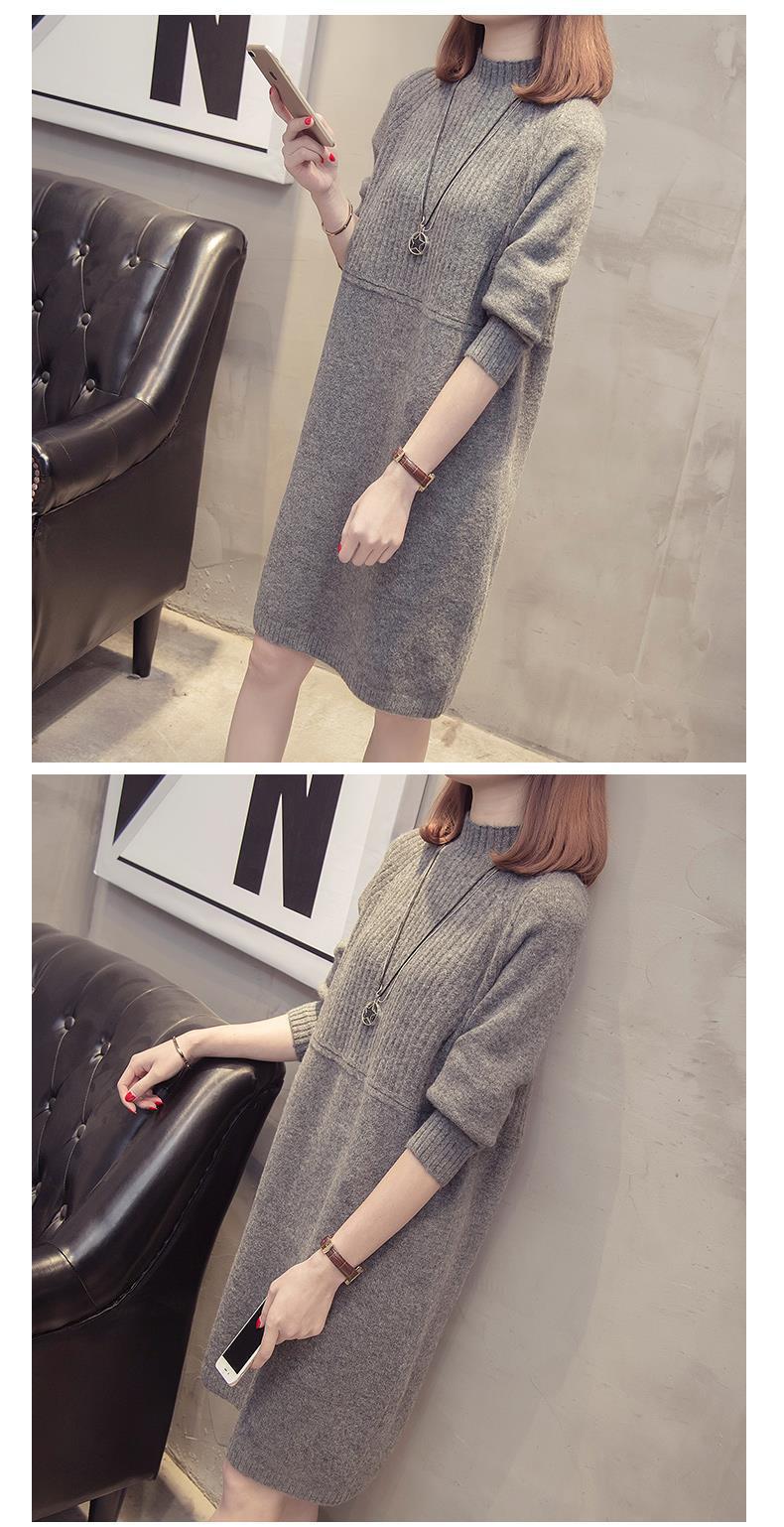 中长款毛衣女半高领套头加厚针织连衣裙秋冬过膝纯色打底衫毛衣裙