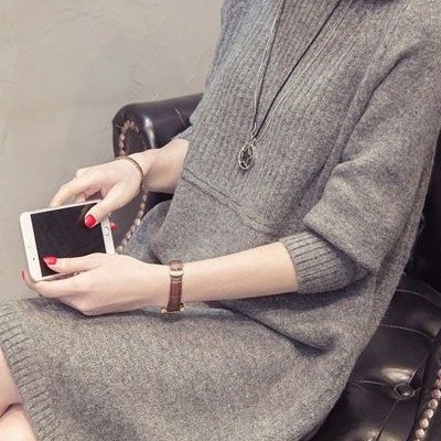 現物ワンピースクロスボーダー秋冬半高襟ミディアムロング2024秋冬新作ゆるいボトムニットワンピース