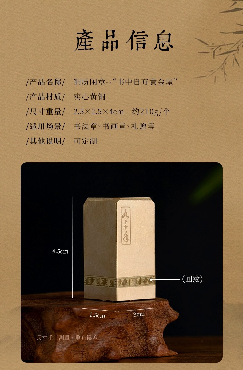 本の中には黄金屋があります。2.5 × 2.5 × 4cmの銅印があります。