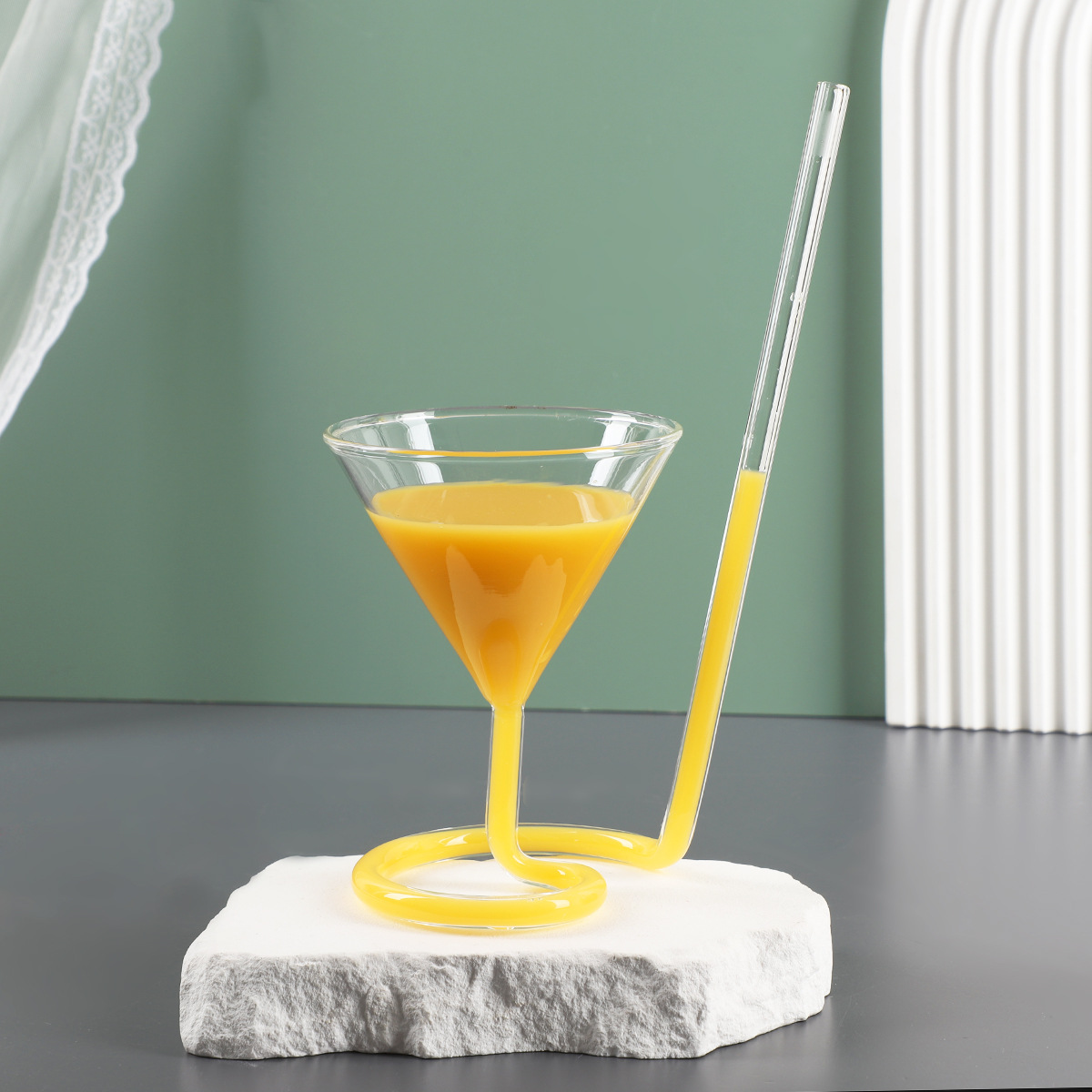 クリエイティブガラススパイラルカクテルカップ回転マティーニグラスクリエイティブストローカップジュースコーヒー吸血鬼カップ
