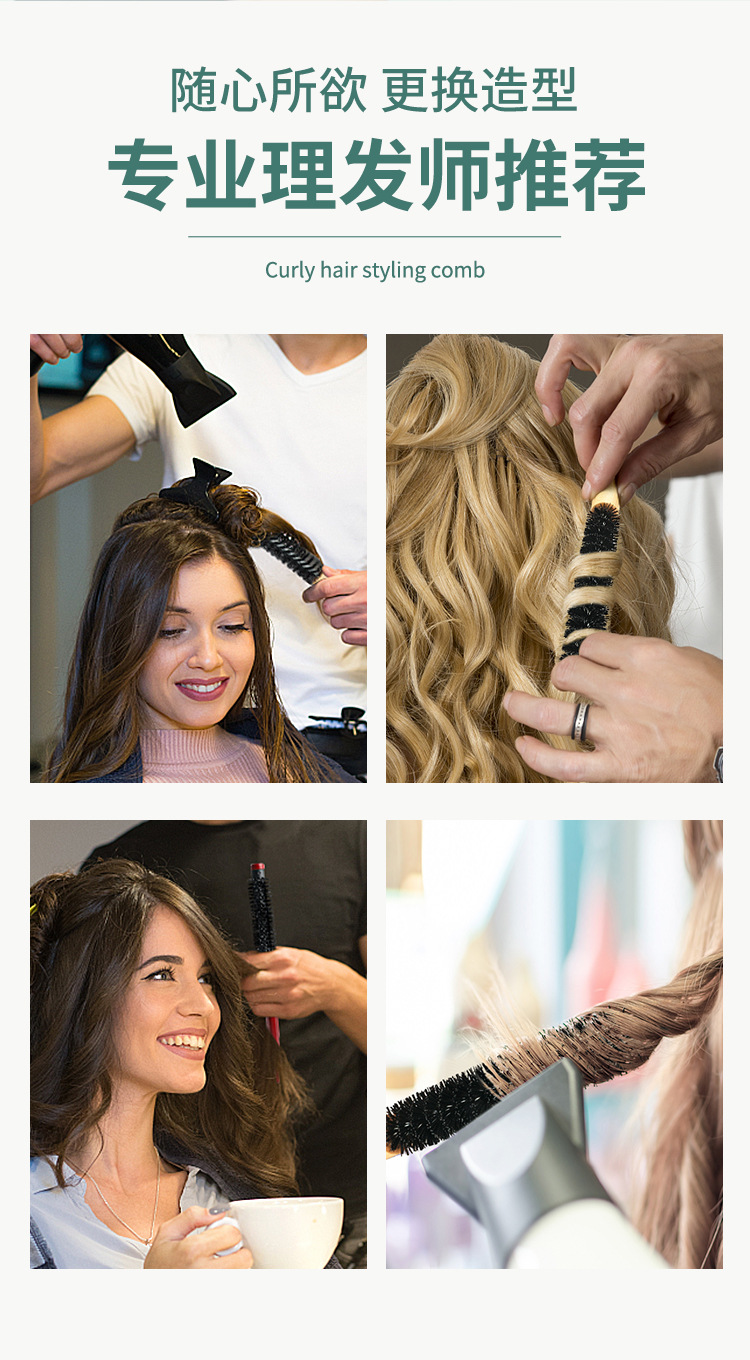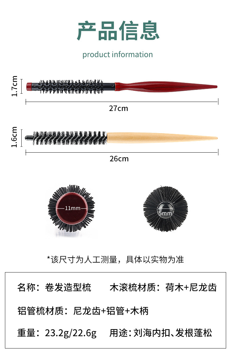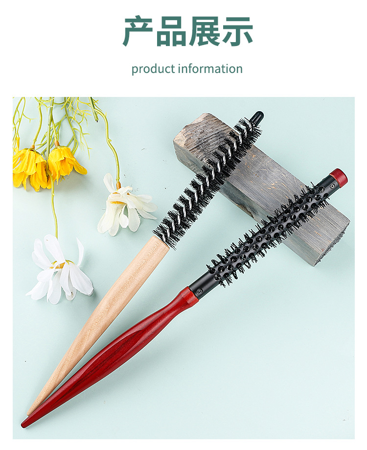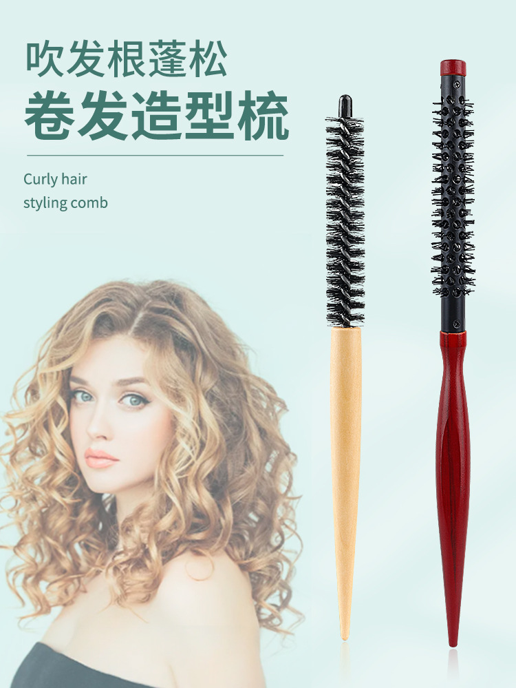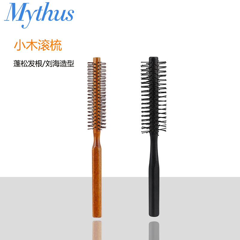 发廊美发木滚梳家用美妆发根蓬松造型小木滚梳刘海内扣卷发梳跨境
