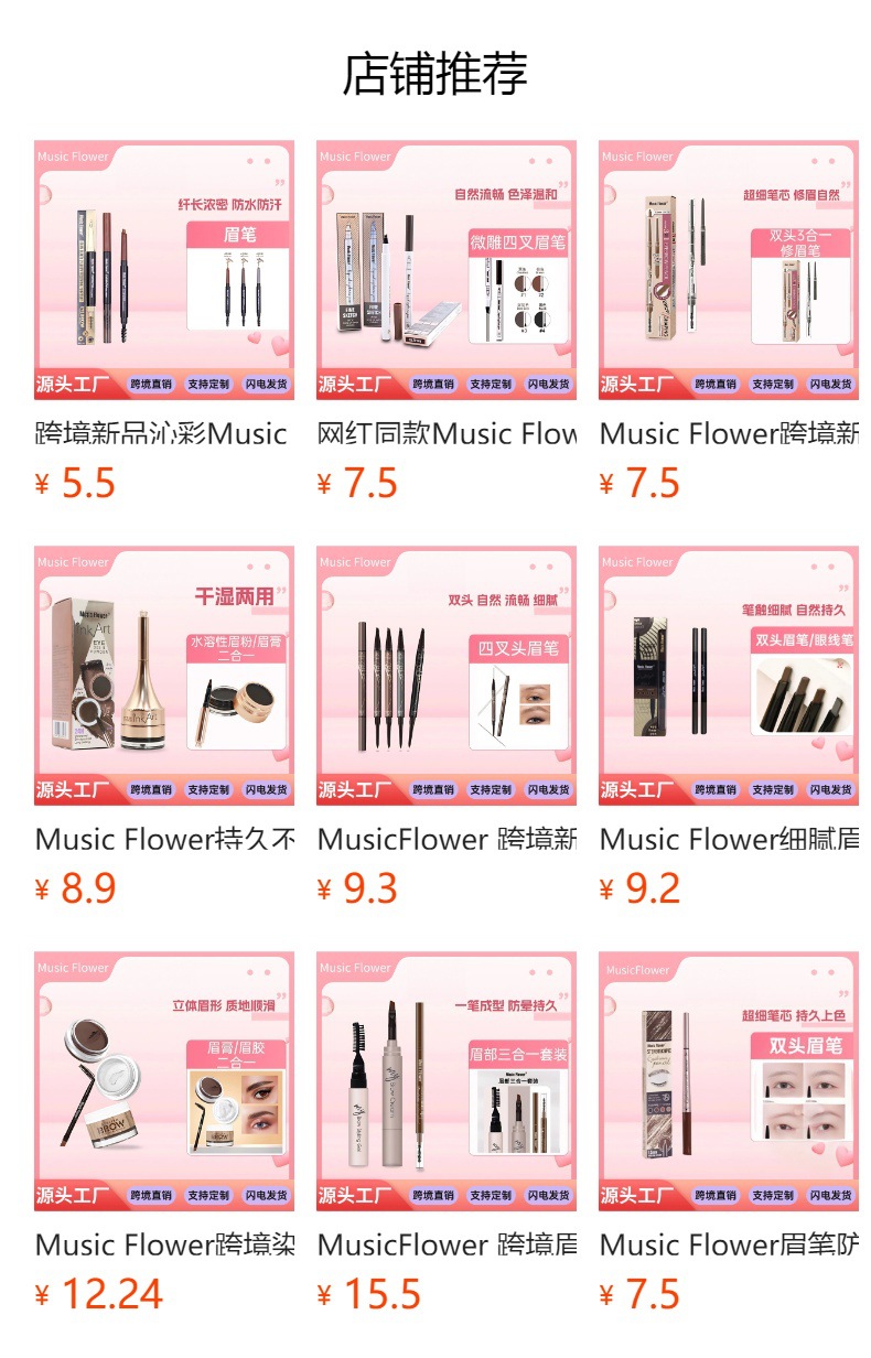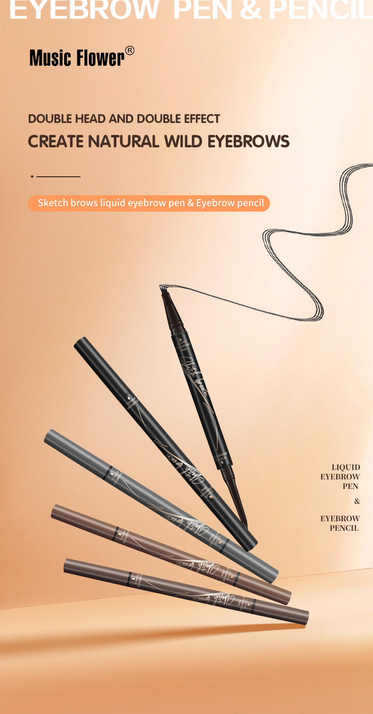 MusicFlowerクロスボーダー新品フォークヘッドリキッド眉毛ペンシルスリム眉毛ペンシルツーインワン化粧失神しません