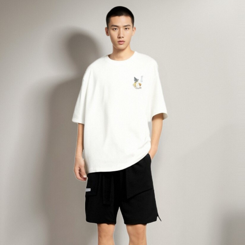 2021夏の新型趣味キャラクタープリント半袖tシャツ男性潮牌街頭ゆるいカップル丸襟tシャツ