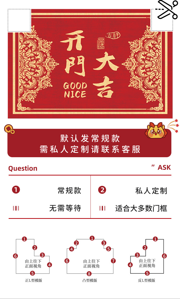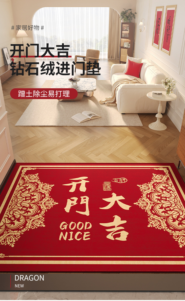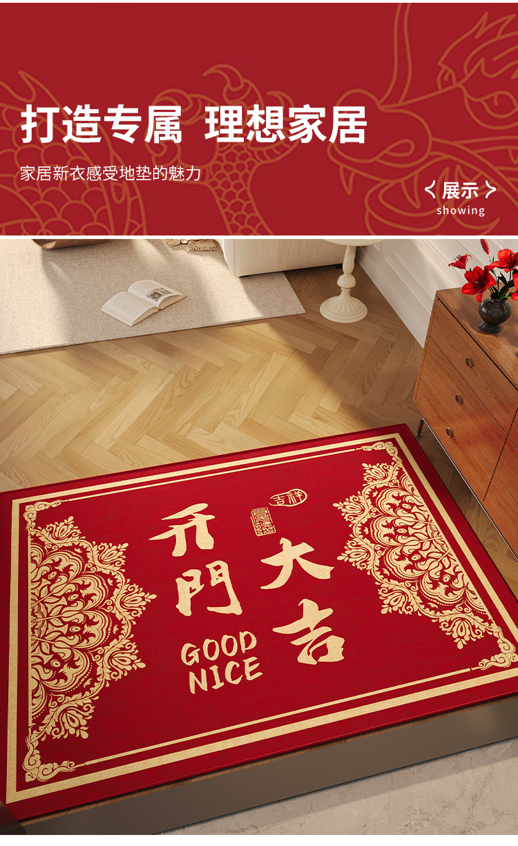 2024年新年入戸床マット家庭用ドア滑り止めマット入り口マット龍年旧正月赤いじゅうたんのドアマット