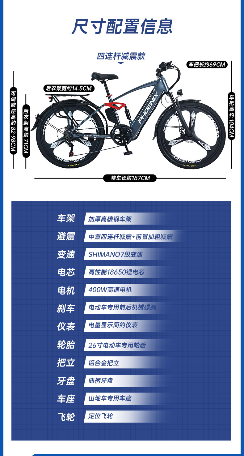フェニックスリチウム電池電動マウンテンバイク 26inch 世代電動アシスト電動可変速バッテリー車新国家標準自転車