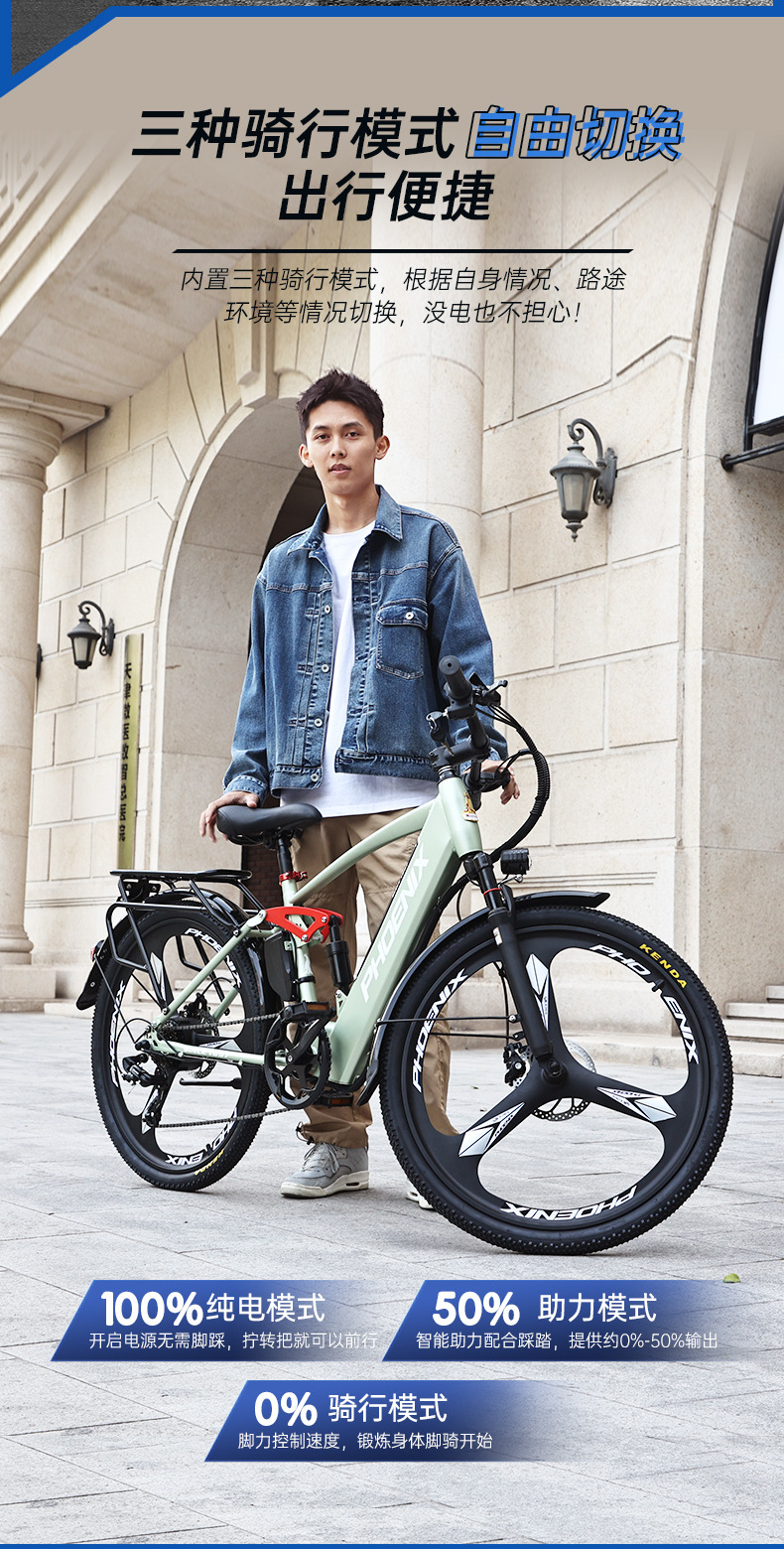 鳳凰電動アシスト自転車男性成人電気自動車リチウム電気アシスト車女性用通勤電気アシストマウンテンバイク