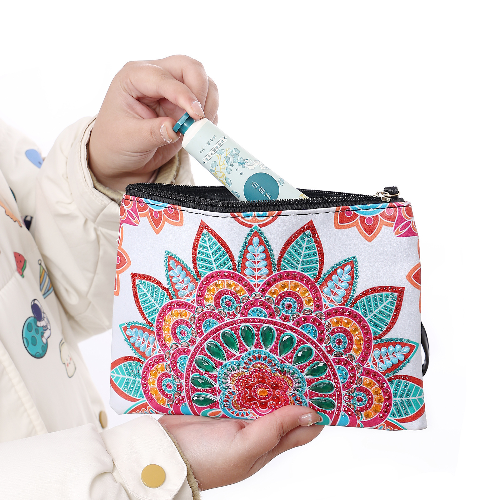 鏡を越えて速売通5d diyダイヤモンド彩色手包化粧バッグ曼荼羅スタイルダイヤモンド芸術工芸バッグ