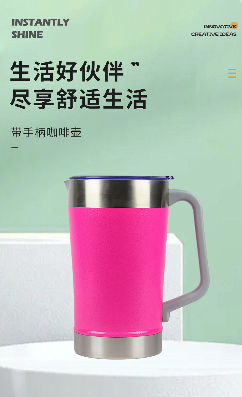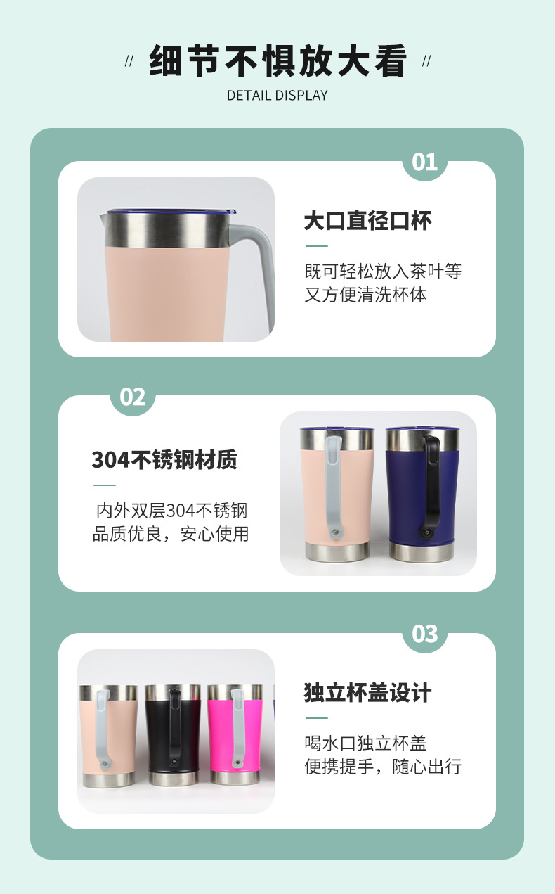 亚马逊热销坚固耐用不锈钢双层保温杯喷塑带手柄办公马克杯
