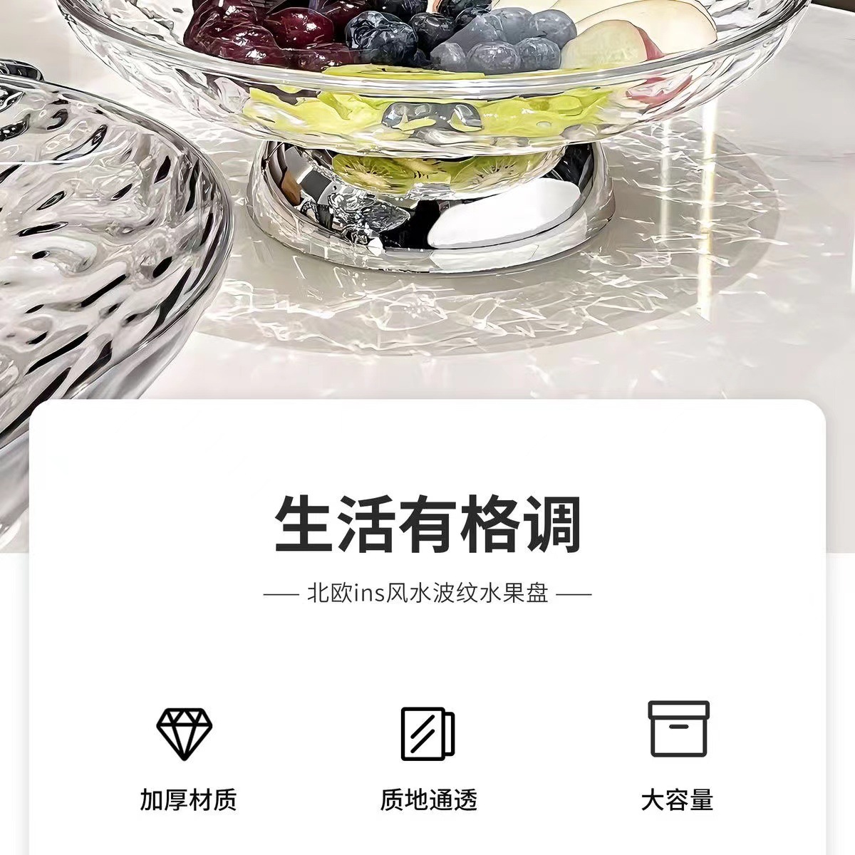 大号简约水果盘客厅家用法式玻璃糖果高档茶几高颜值零食收纳摆放