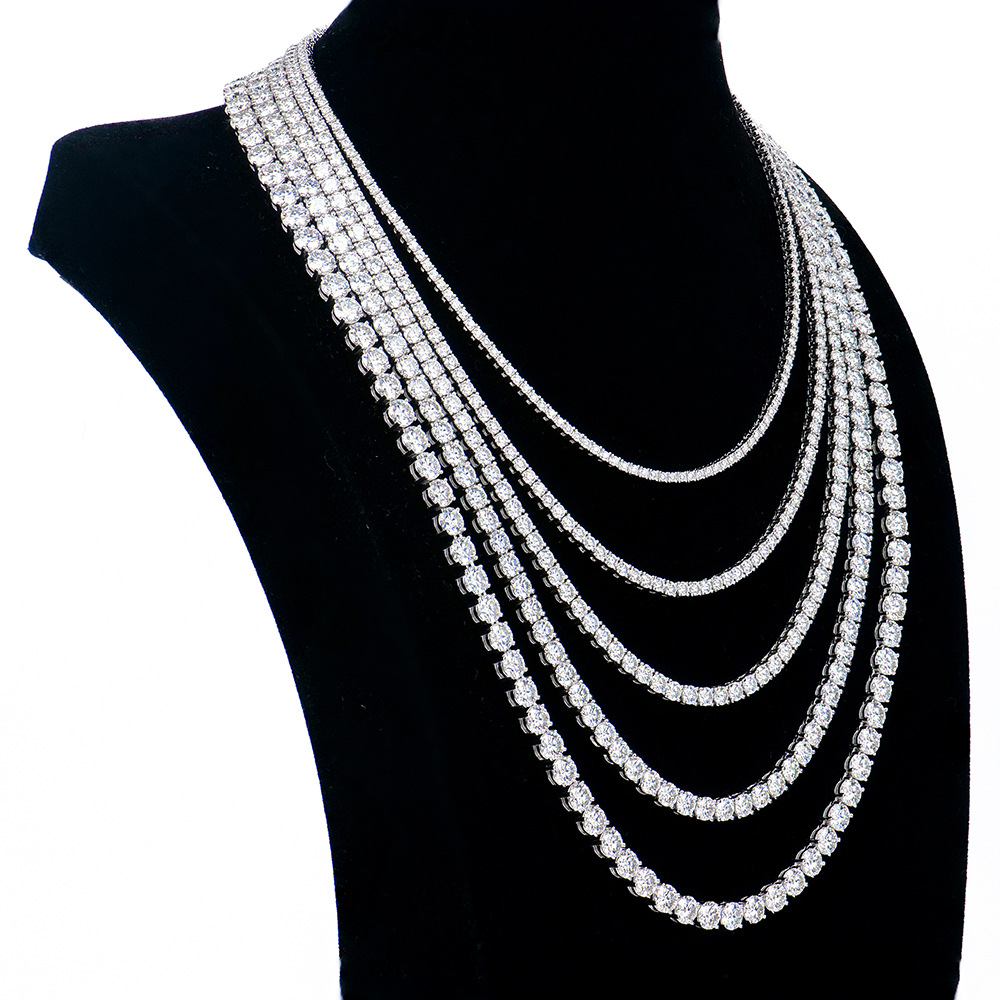 新しい 3 ミリメートルシルバーテニスネックレス女性のためのモアッサナイトテニスチェーンシンプルなハイエンドジュエリーネックレス女性のための