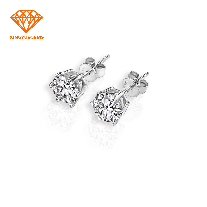 シルバー925のクラシックな6本爪1カラットのモアッサナイトイヤリング、シンプルな気質のイヤリング、すぐに発送可能、ファッション