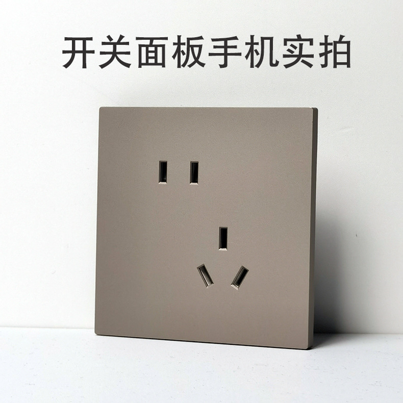 隠蔽型86大型銅製スイッチパネル、マット仕上げ、超薄型、肌のようなグレー、家庭用5穴ソケット、大型パネル、2個または3個のコンセント、卸売